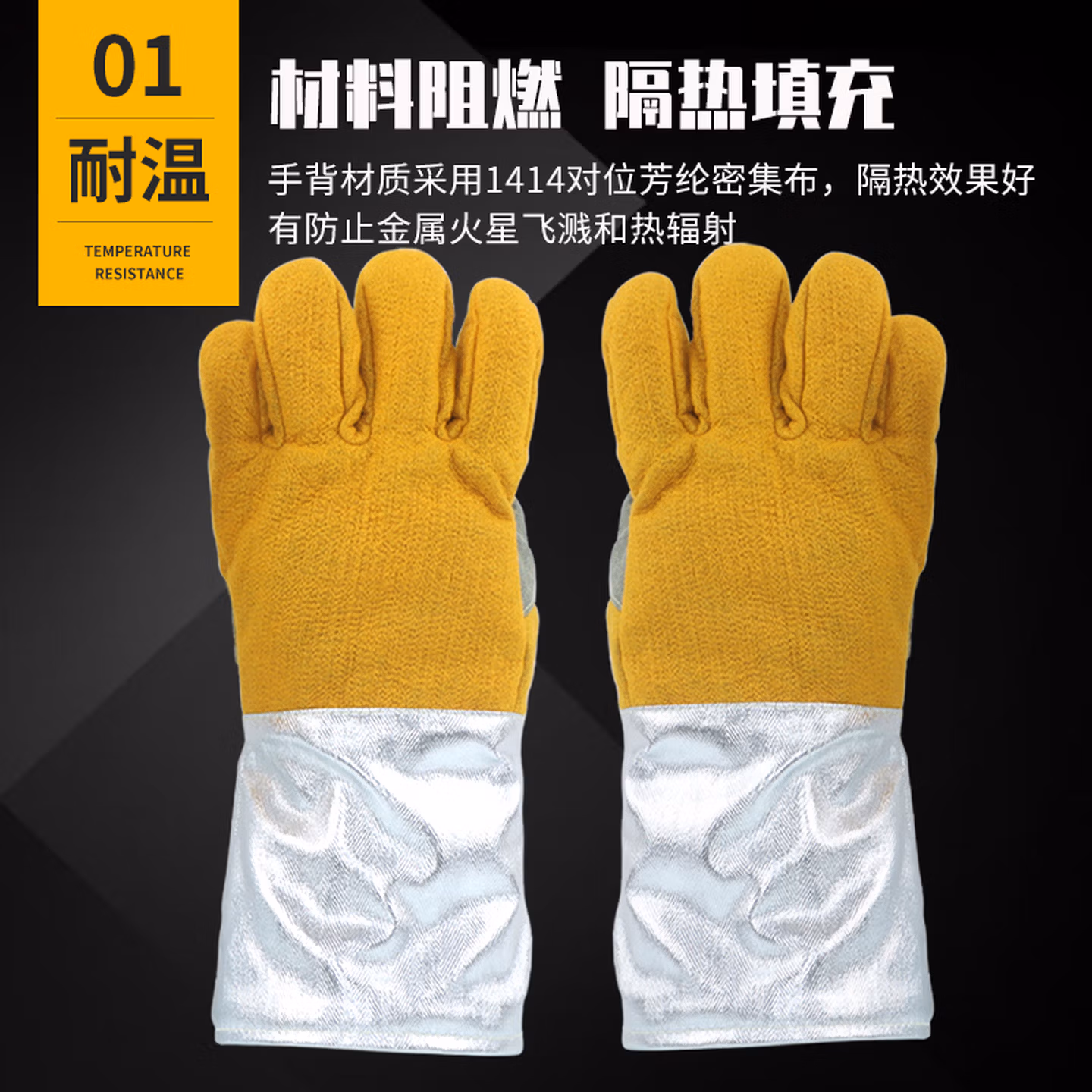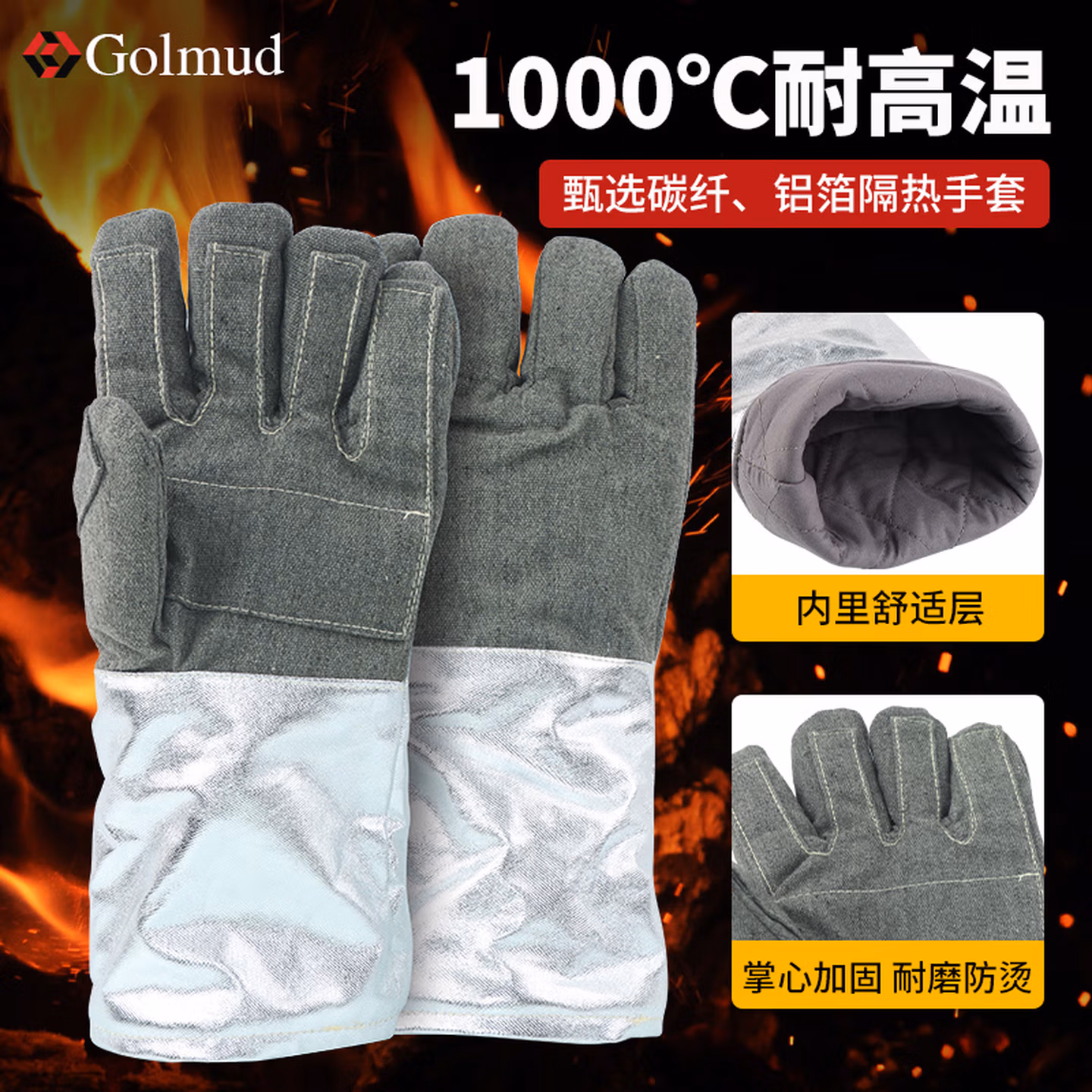 > Golmud 耐高温手套1000度 铝箔隔热 防火防烫 芳纶阻燃工业GM597