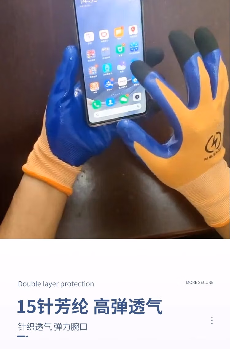 > 恒聚(Hengju)劳保耐磨灵敏触屏400V低压防电防割透气手套