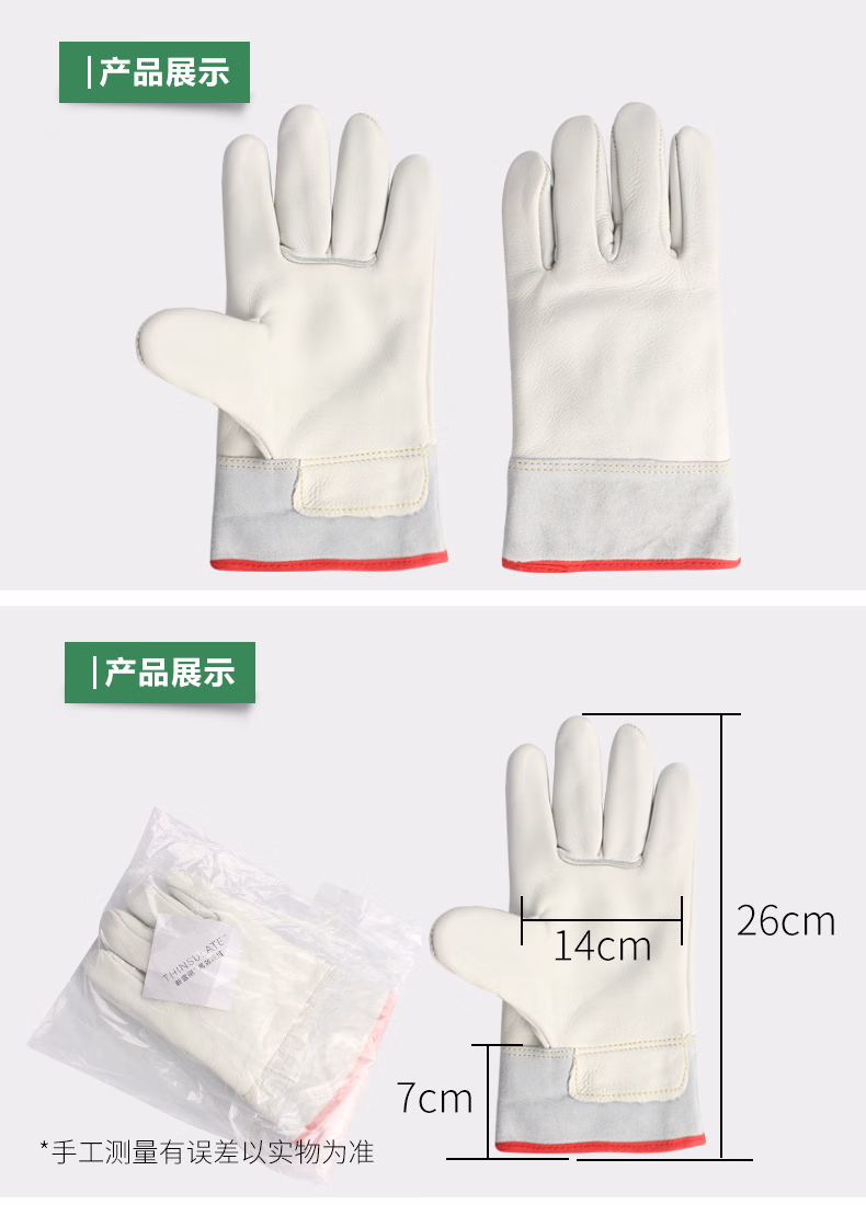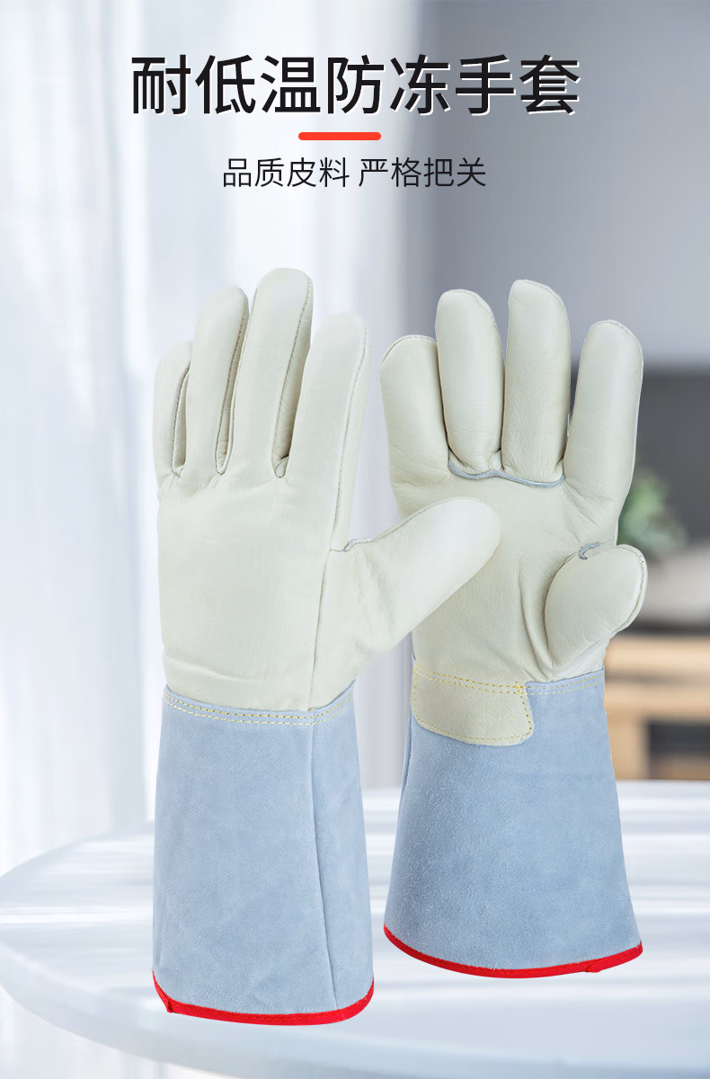 > 赫钢 牛皮耐低温手套 液氮LNG防寒防冻冷库加气站防护手套 耐-180-250度低温 26cm