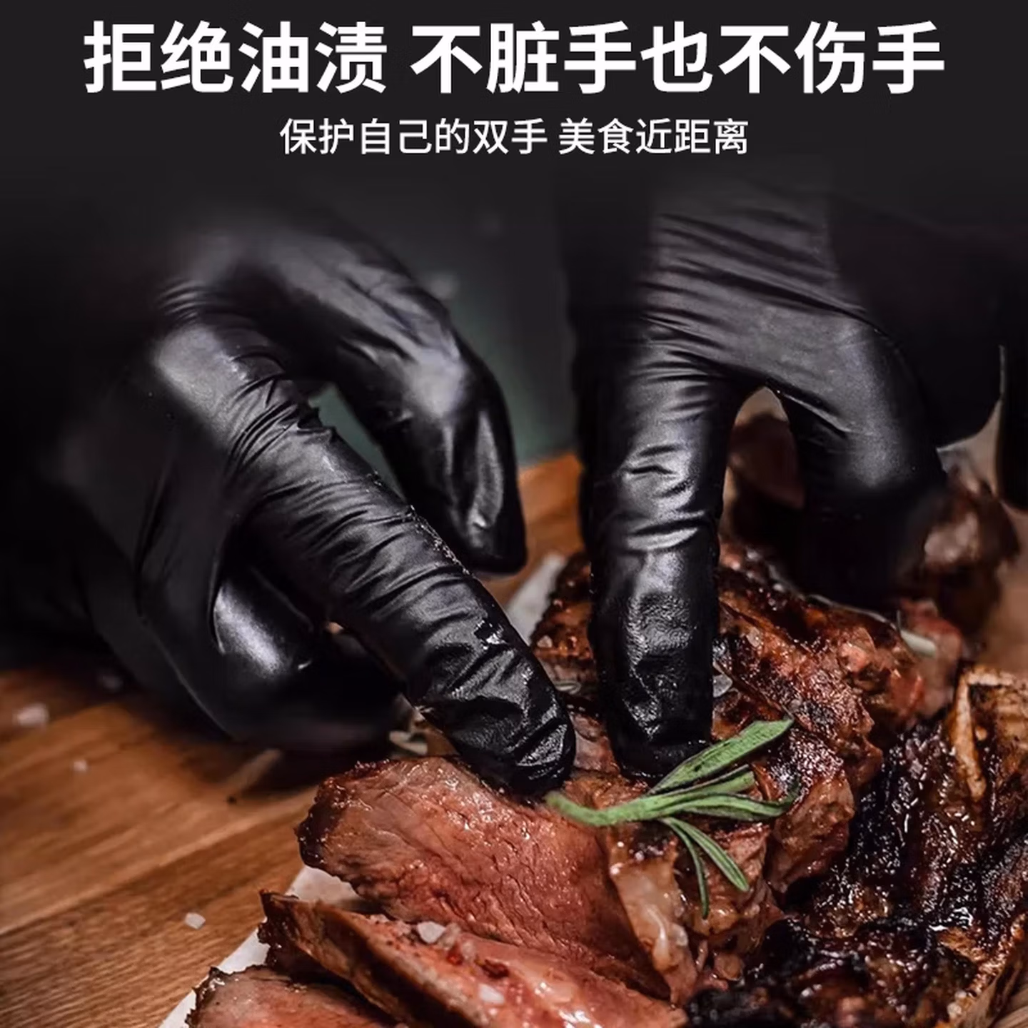 > 淘正食品级揉面手套一次性不粘PVC加厚耐用长防水耐油无异味烘焙面食 0异味黑色丁腈【100只】更厚更弹 M
