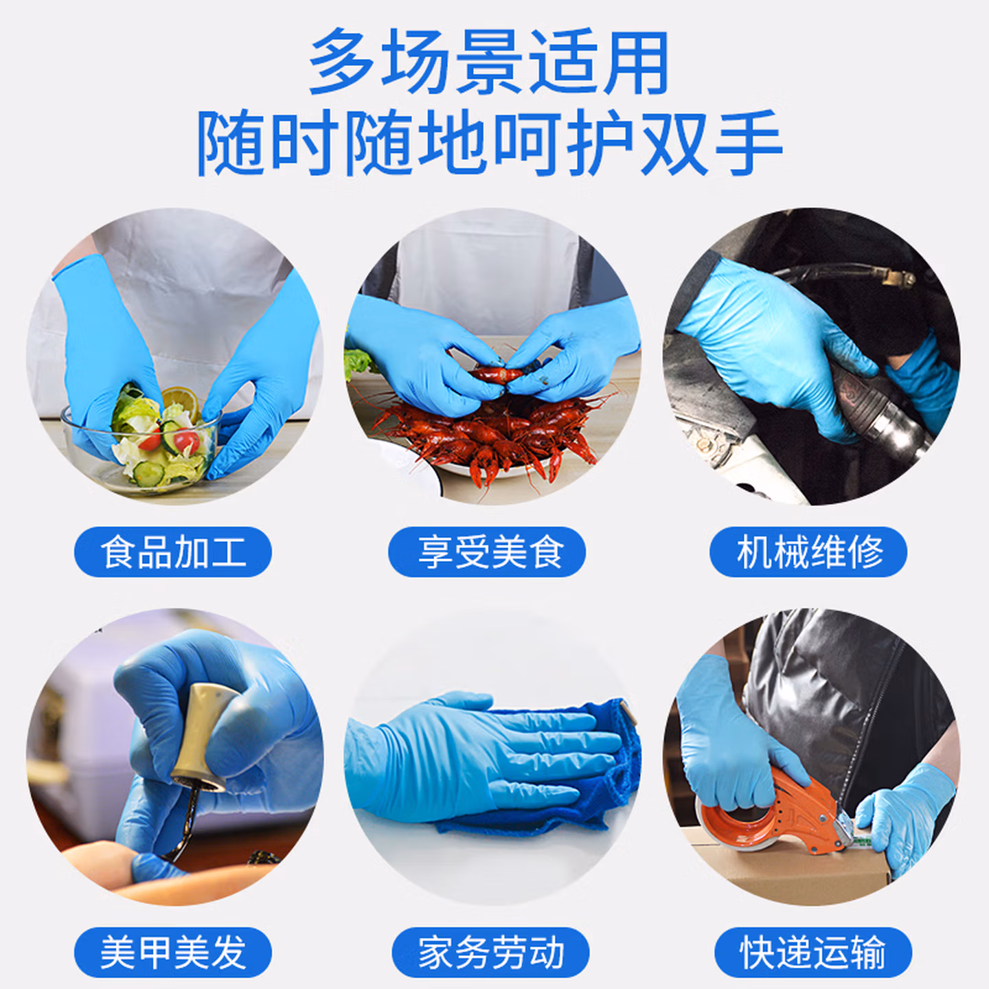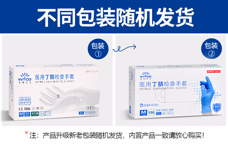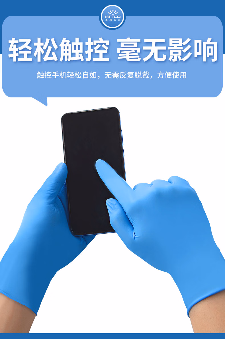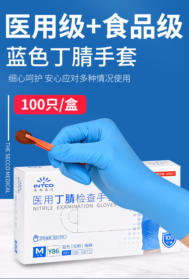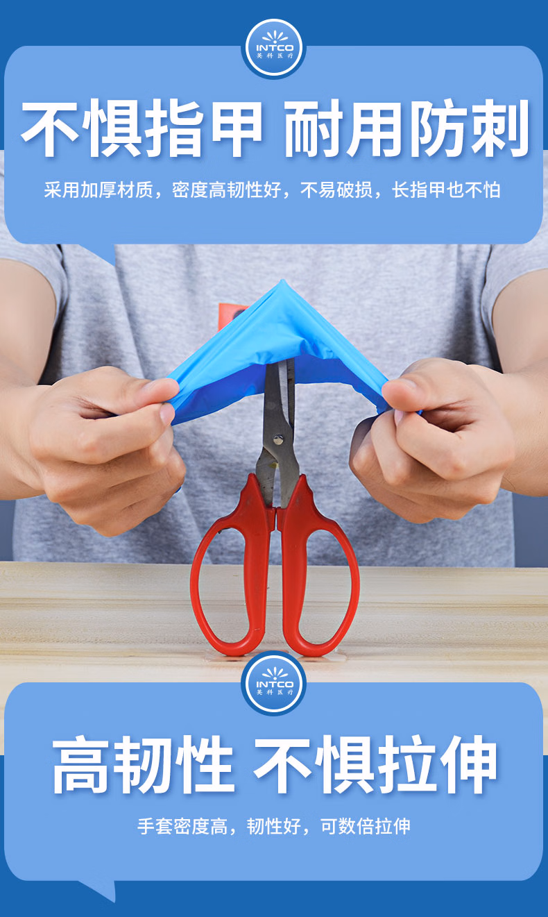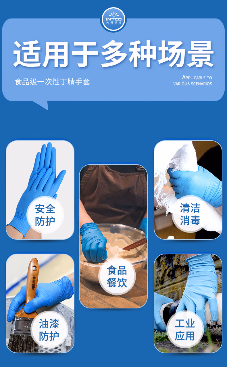 > 英科医疗(INTCO)一次性医用丁腈手套100只S码蓝色防护实验室家务洗碗乳胶橡胶手套