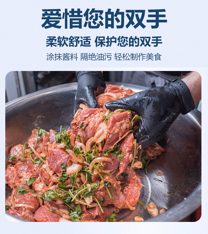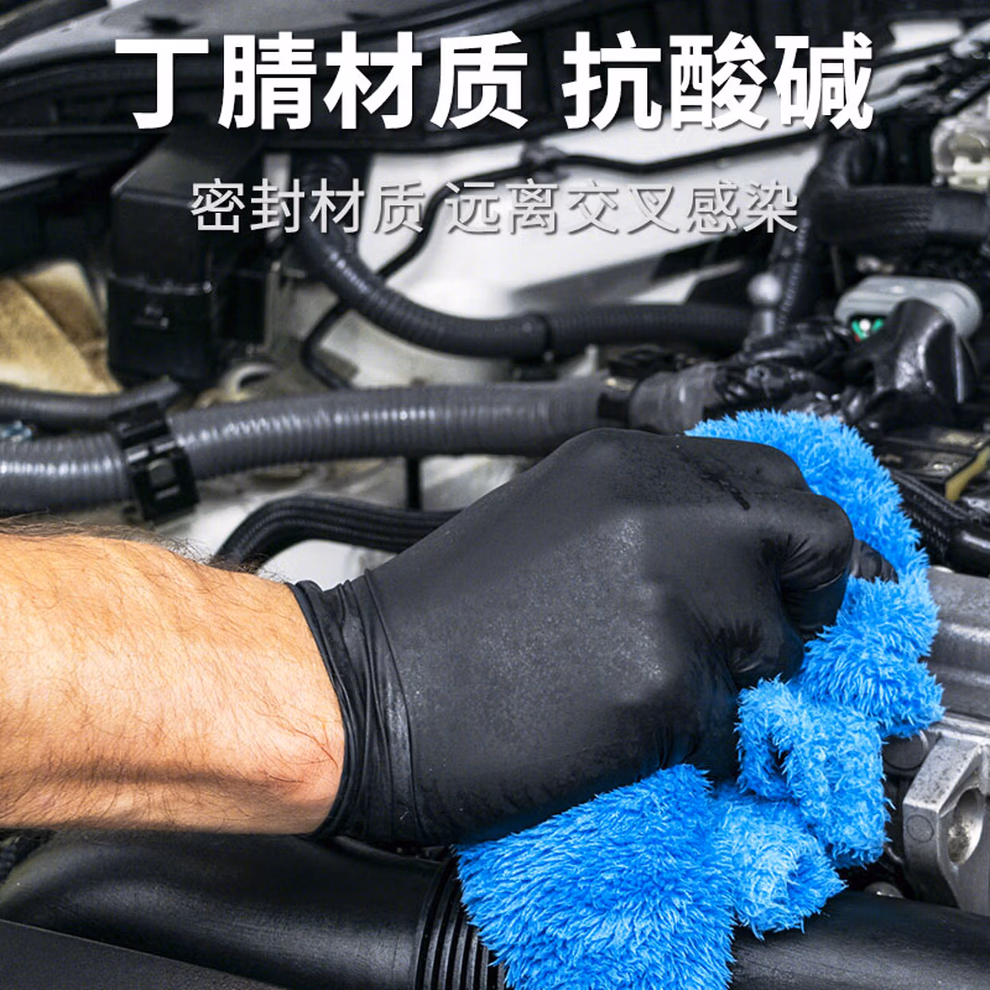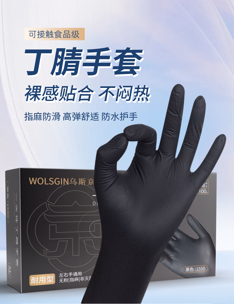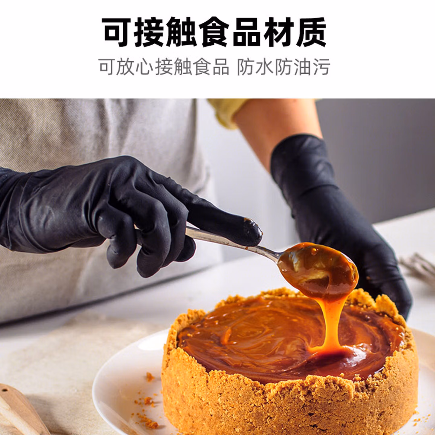 > 乌斯京一次性手套丁腈橡胶100只小码厨房食品级加厚耐家务丁晴手套黑色
