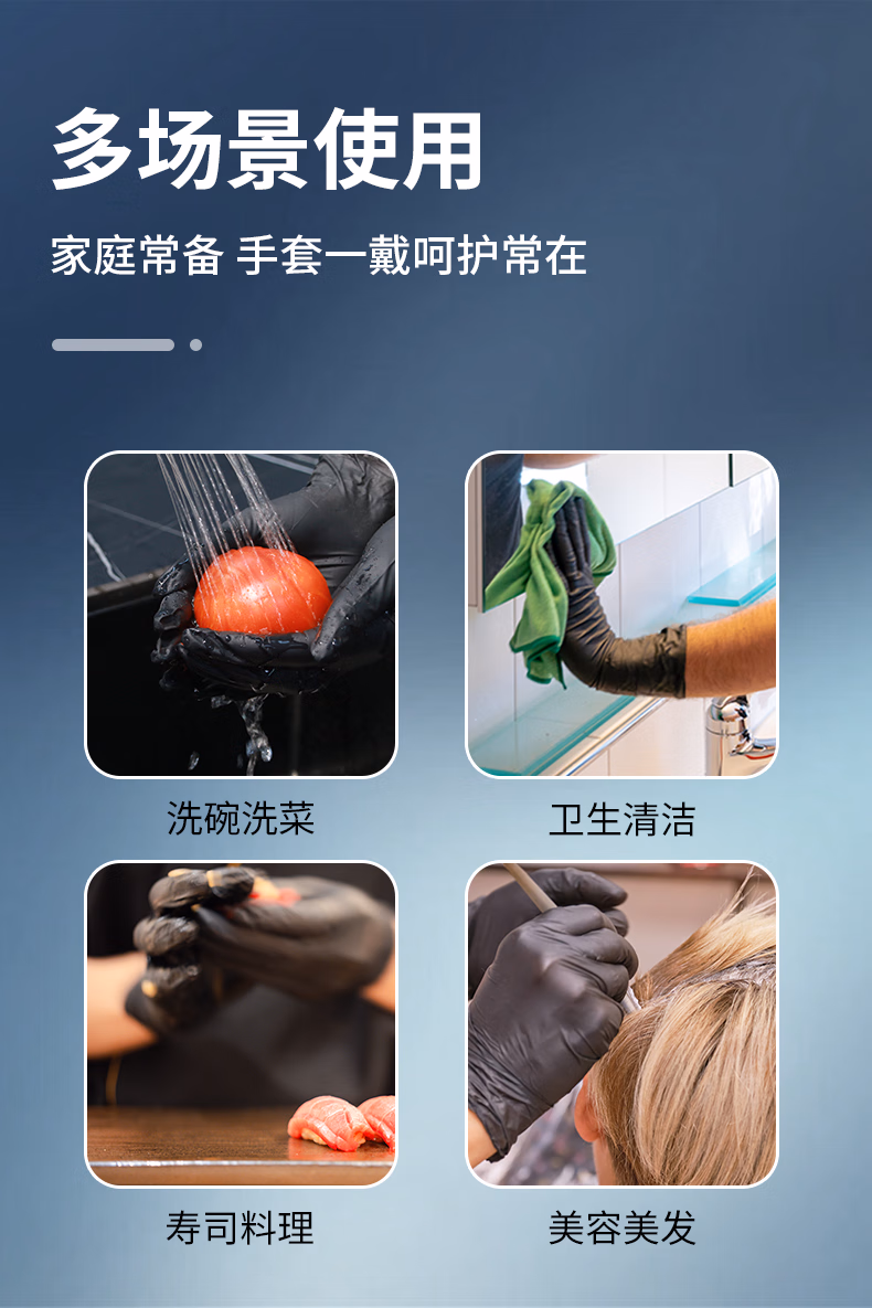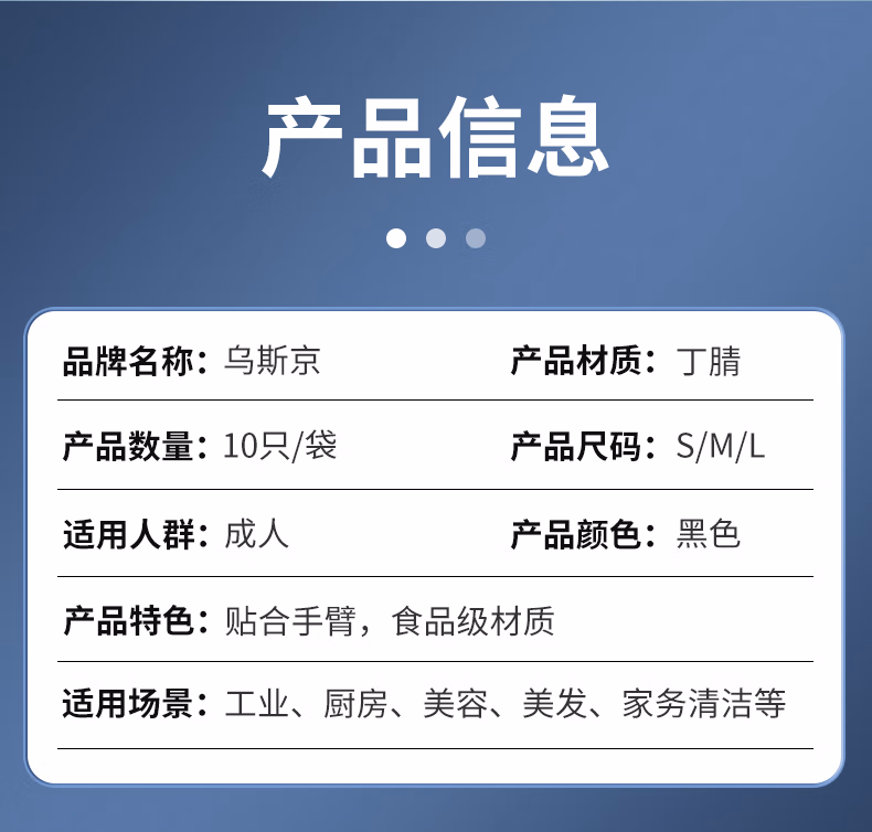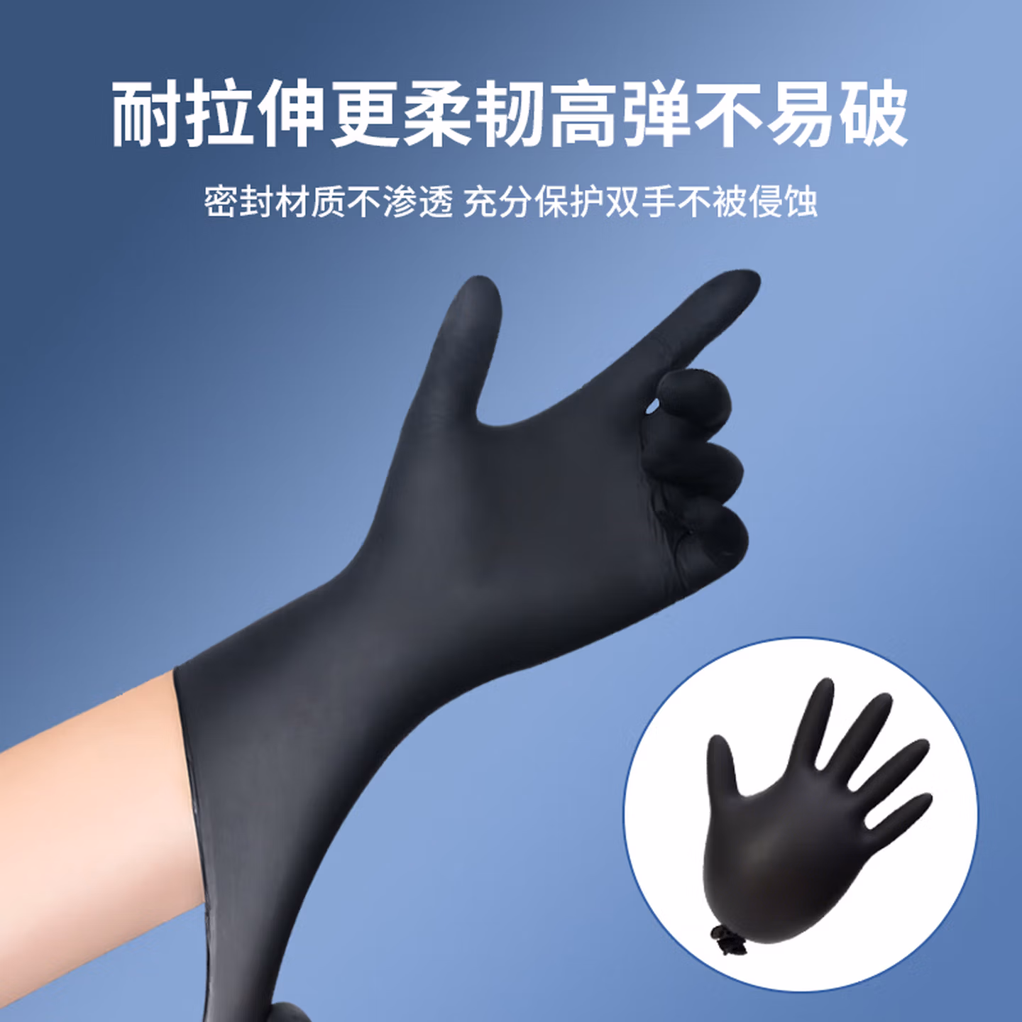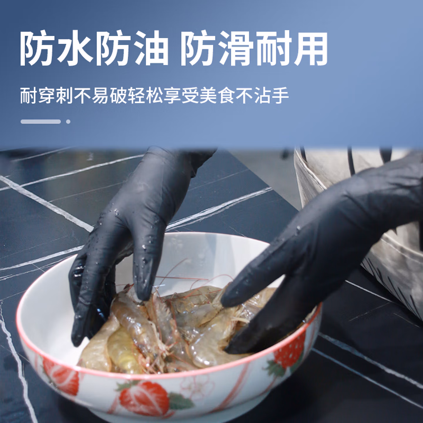 > 乌斯京(WOLSGIN)一次性手套丁腈加长30只大码食品级丁晴手套厨房洗碗防水12英寸