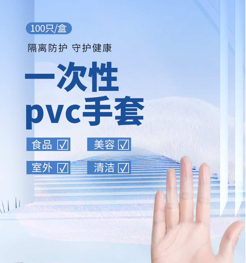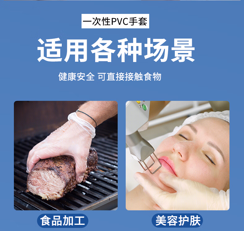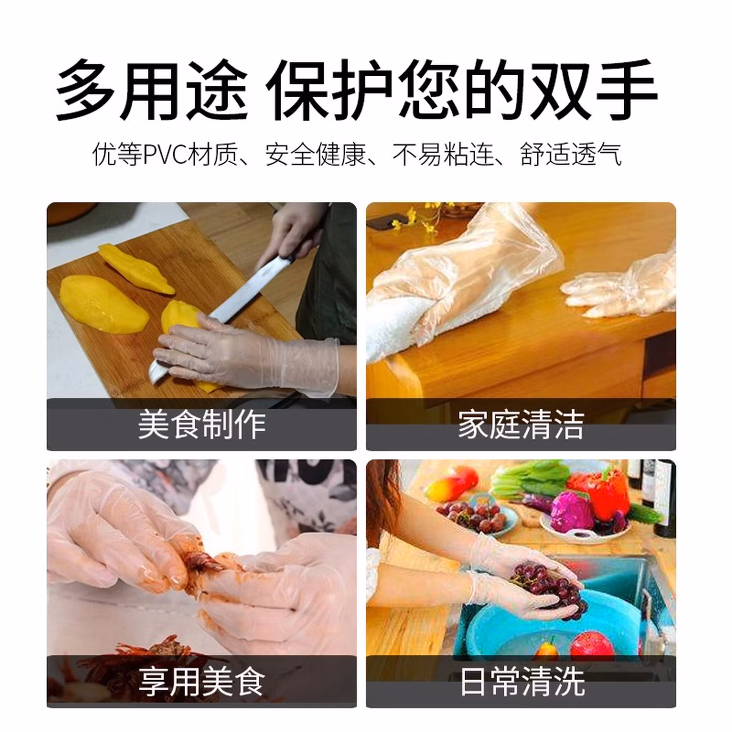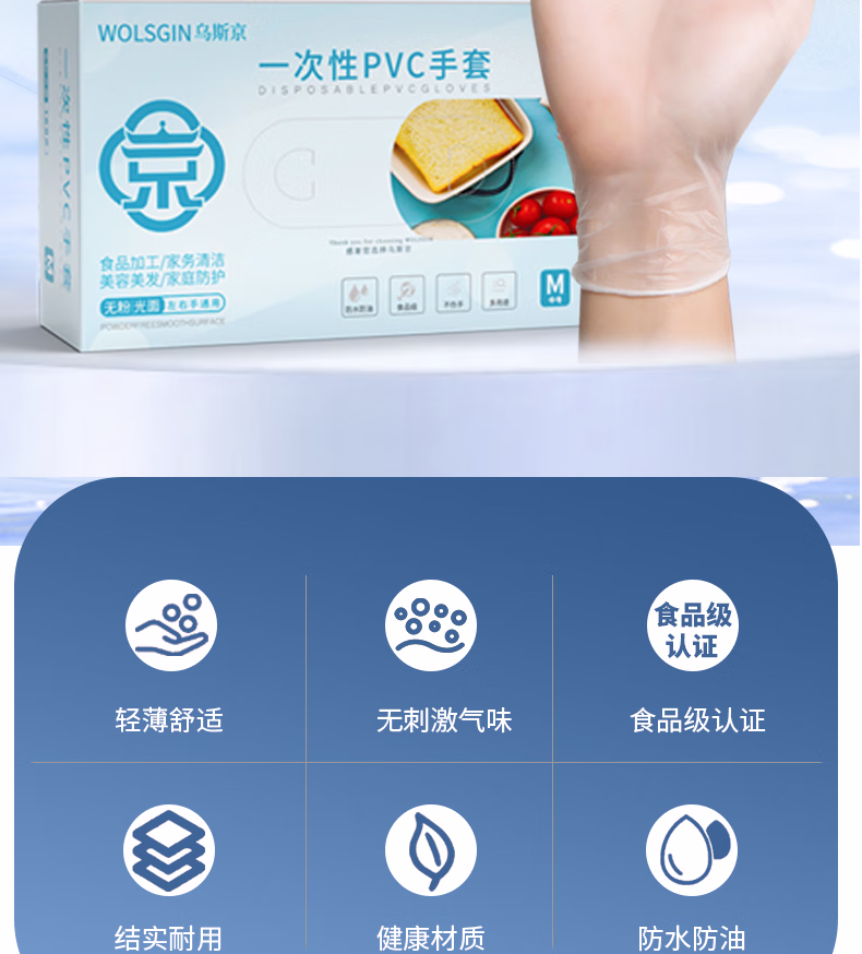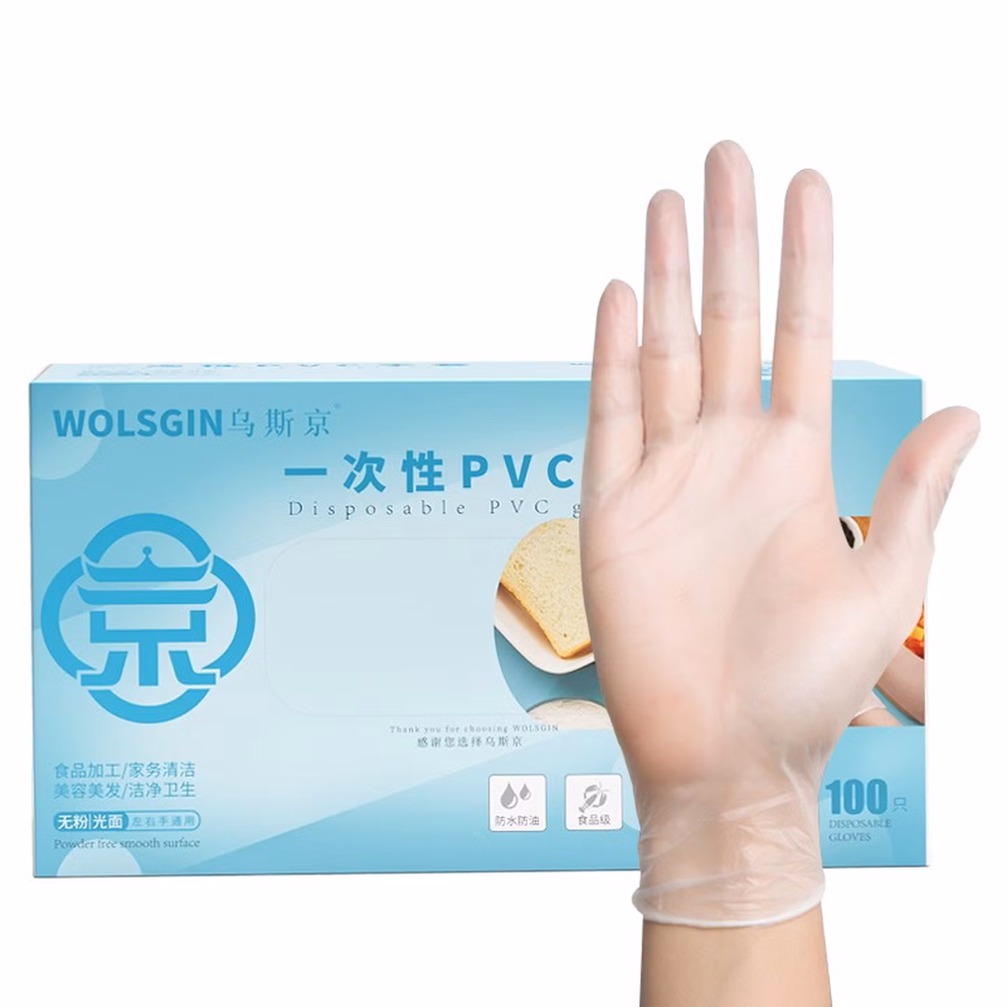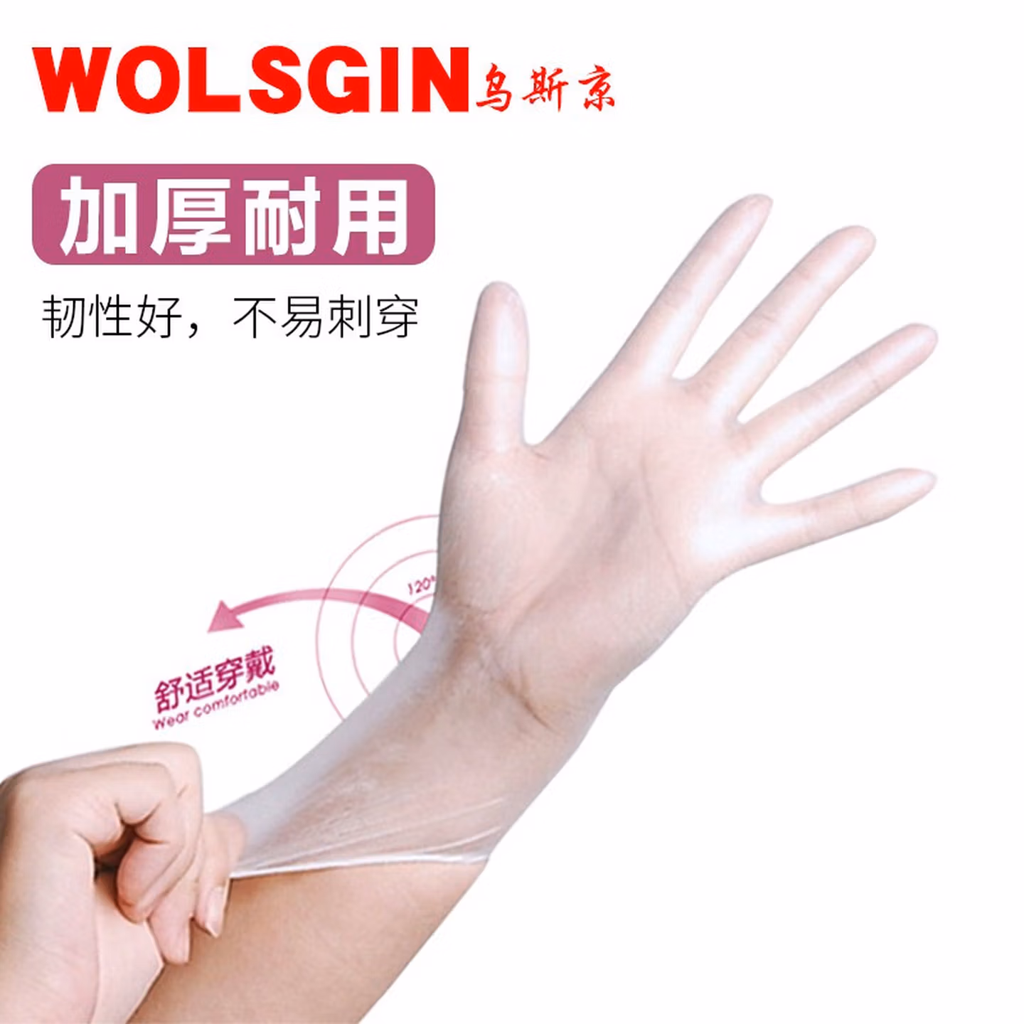 > 乌斯京一次性手套PVC手套100只中码食品级实验美容清洁烘焙餐饮厨房手套