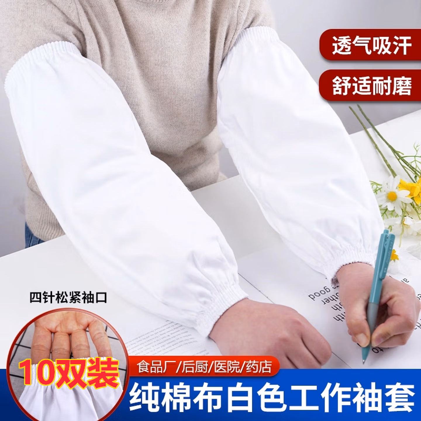 > 窈嘉牛仔电焊袖套加长男女防污加厚耐磨工作护袖工厂劳保防晒臂套袖 10双-棉布白色袖套