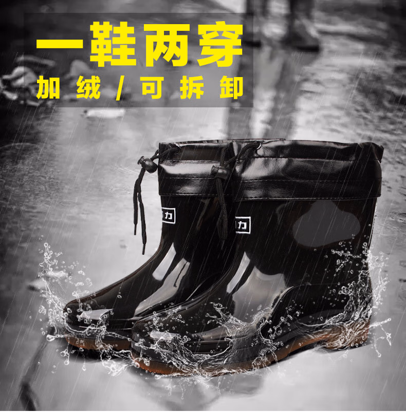 回力雨鞋男士冬季中筒防水胶鞋加绒可拆卸保暖水鞋雨靴套鞋6557黑 40