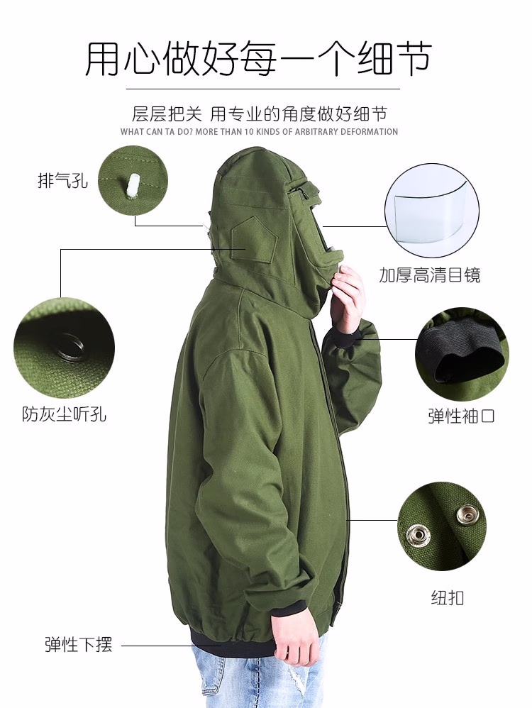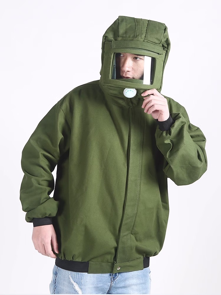 喷砂服打砂衣帆布加厚油漆涂料分连体冲砂喷沙服防尘防护服打磨帽