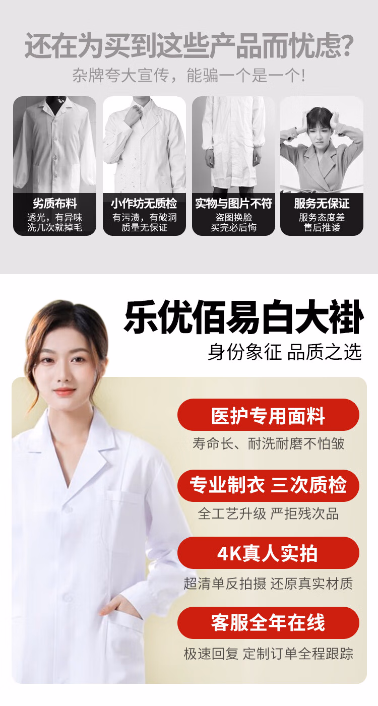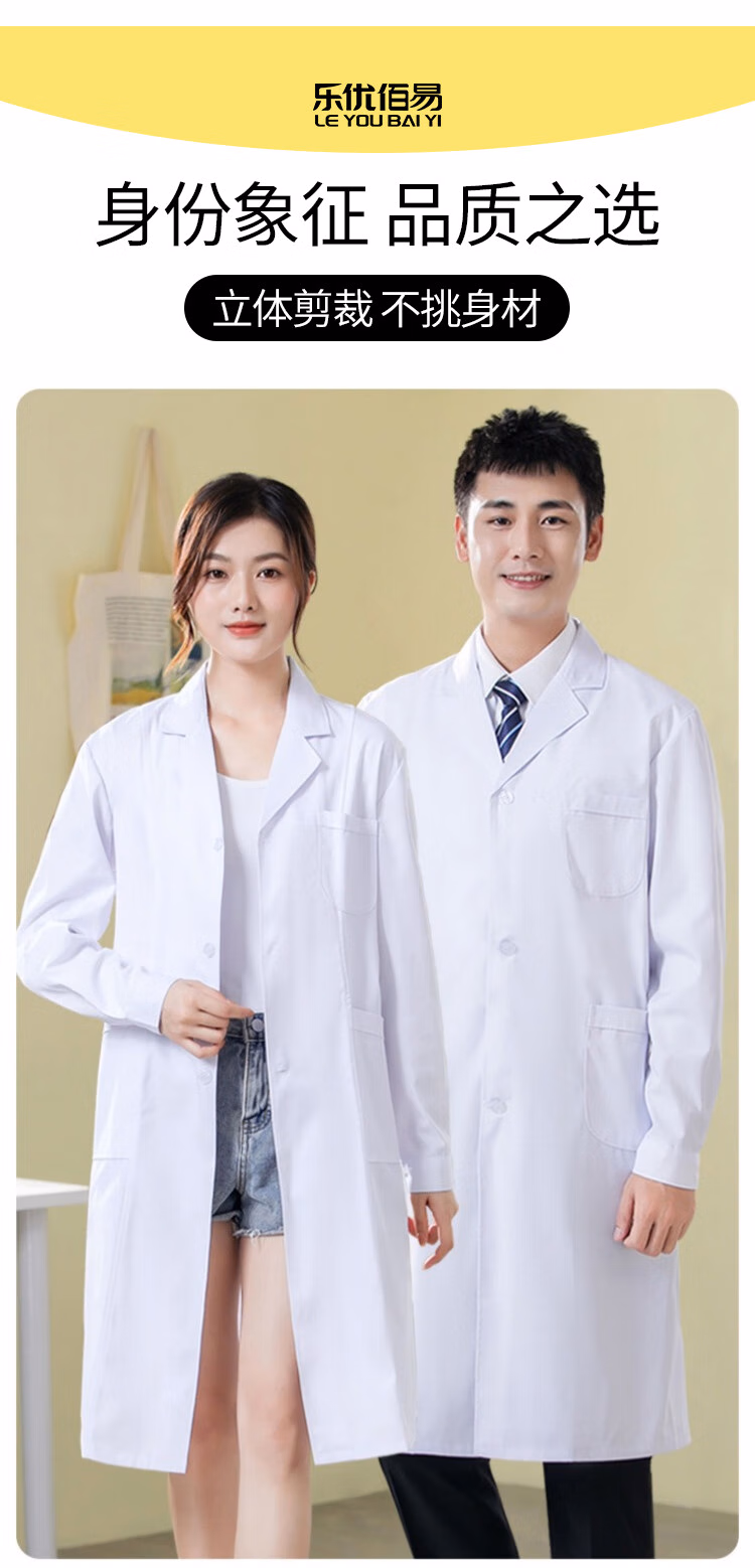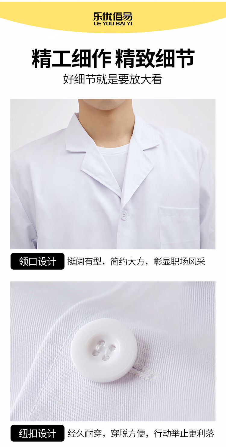 > 乐优佰易 短袖白大褂 标准款XL码 男女学生化学实验工作服