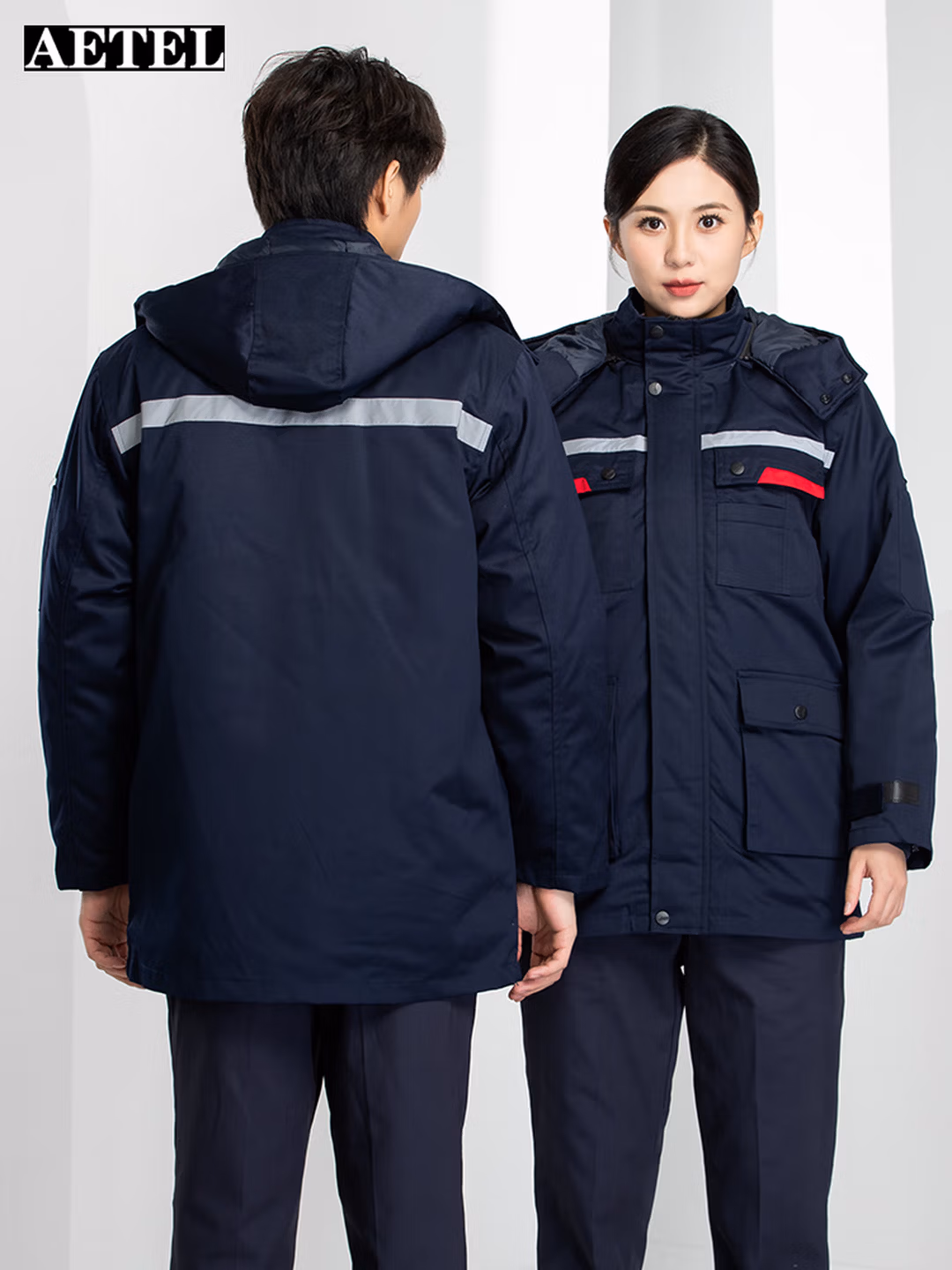 > AETEL防静电工作服棉衣男中长款可拆卸内胆加厚防寒加油站劳保服可定制