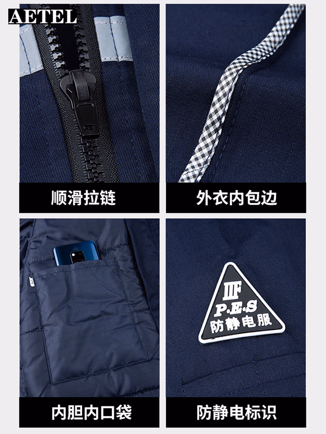 AETEL防静电工作服棉衣男中长款可拆卸内胆加厚防寒加油站劳保服可定制