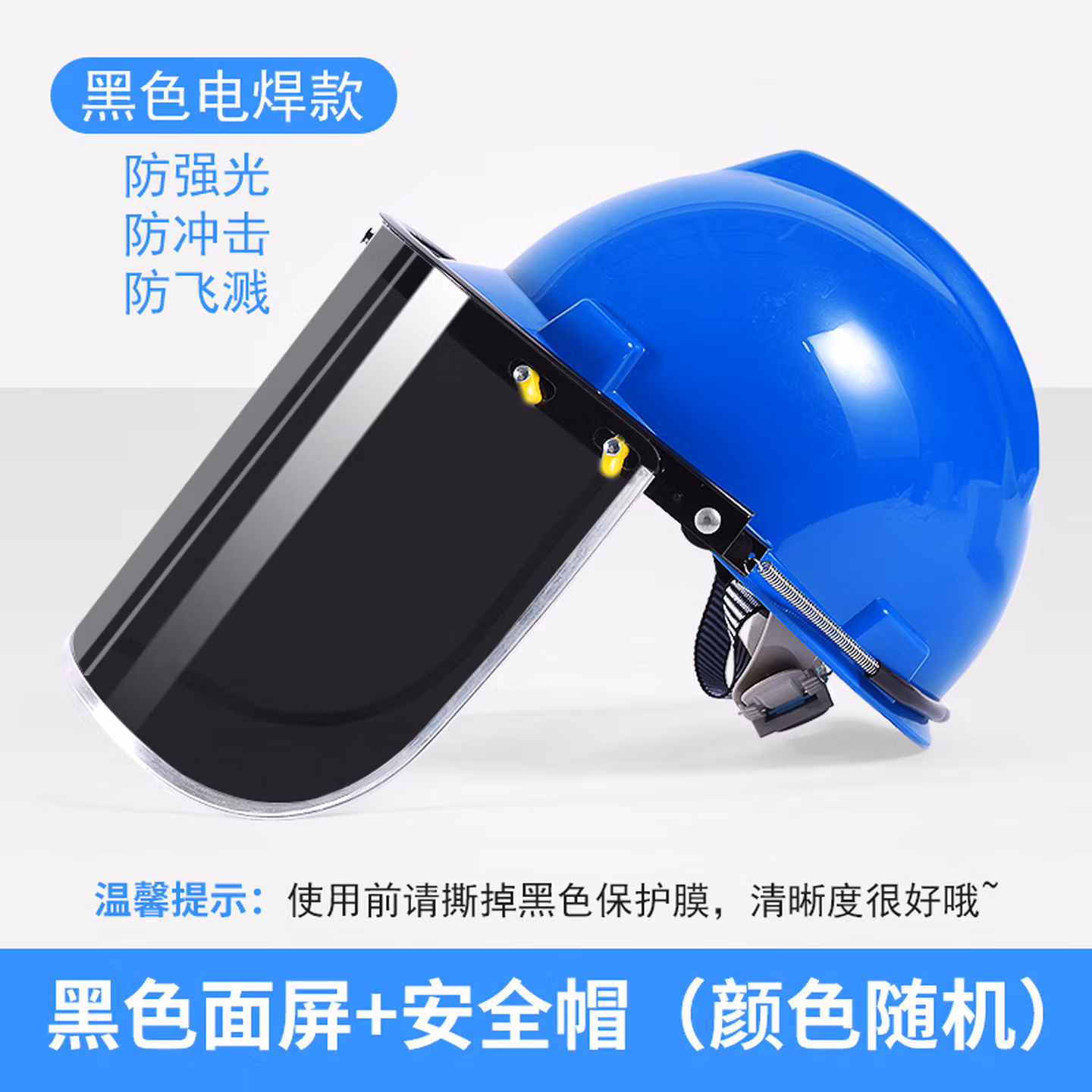 > 配安全帽防护面罩加厚PC全脸打磨防飞溅冲击耐高温劳保电焊面屏具 pc(蓝色膜)透明面屏+支架 其他