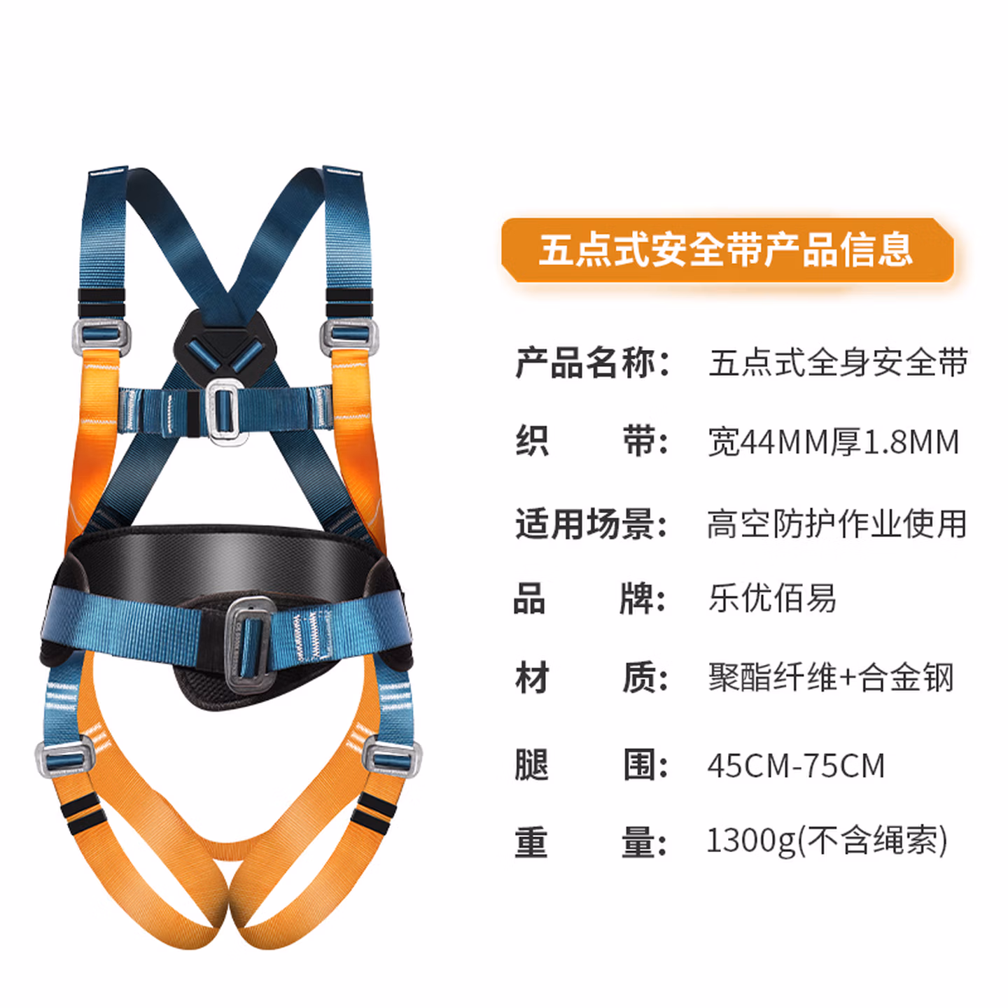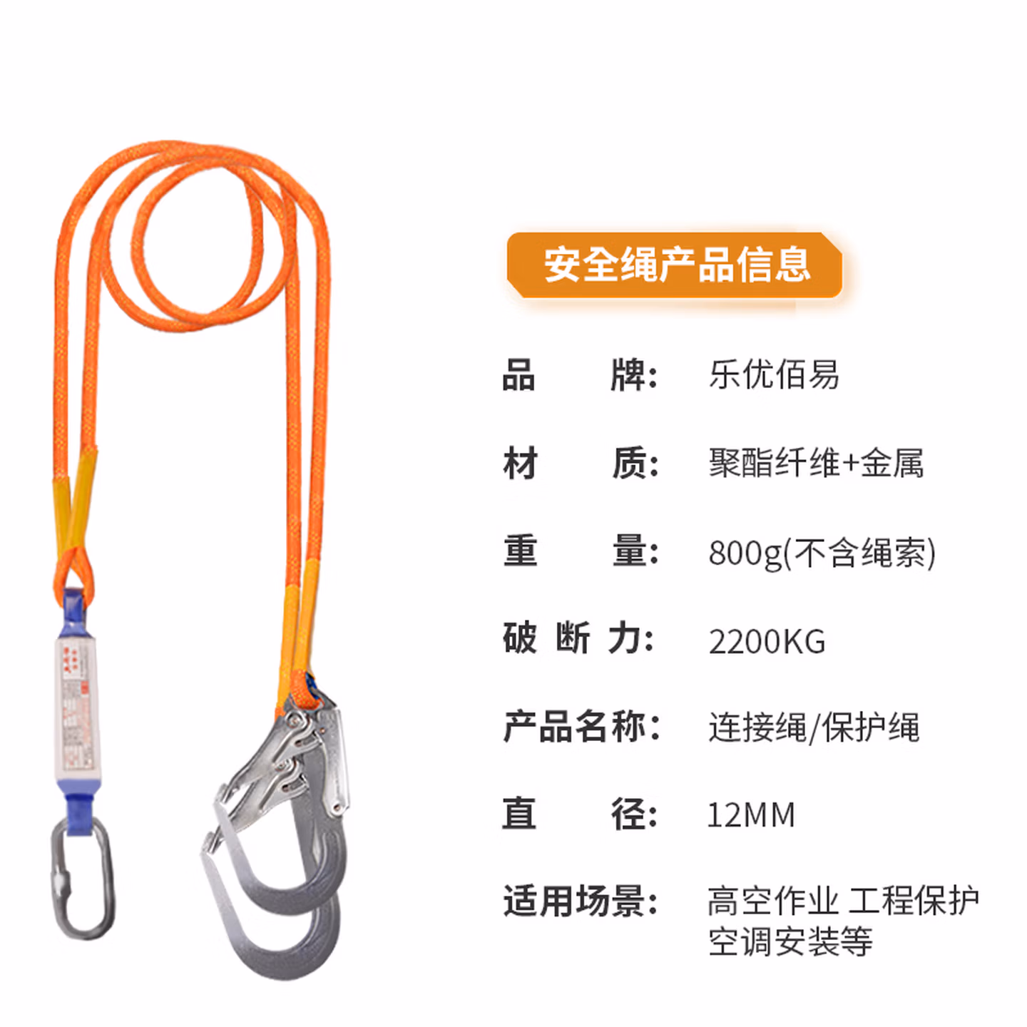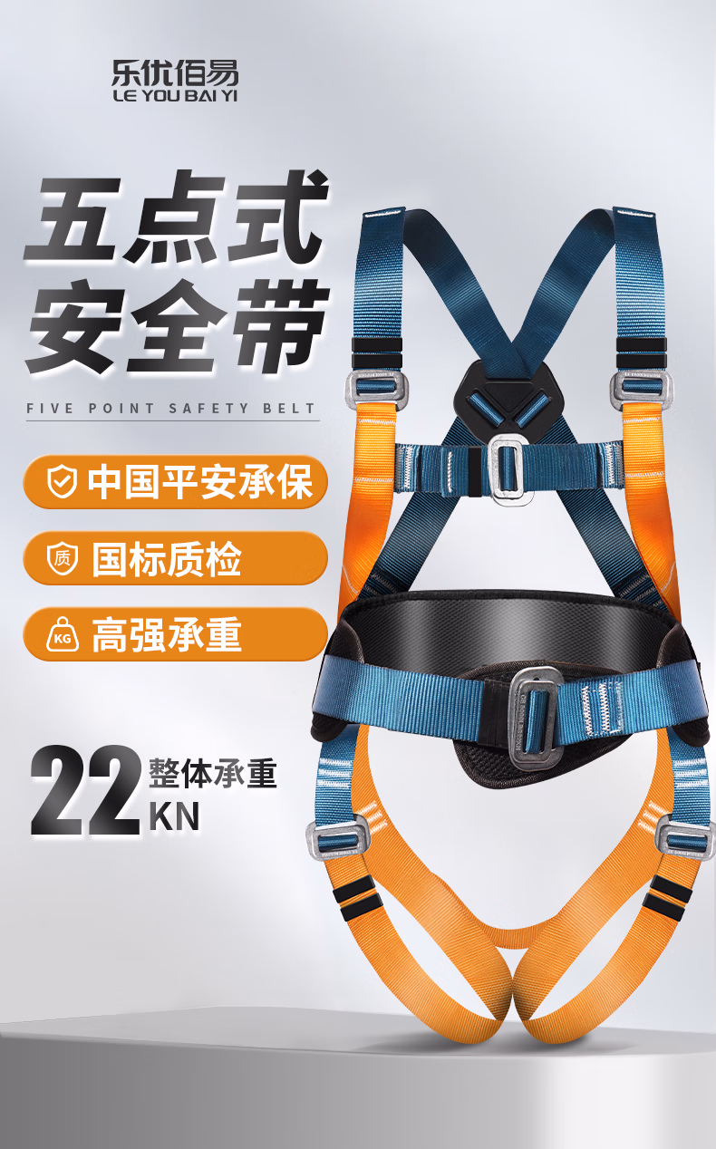 > 乐优佰易 五点式安全带国标安全绳高空作业 单大钩缓冲包2米