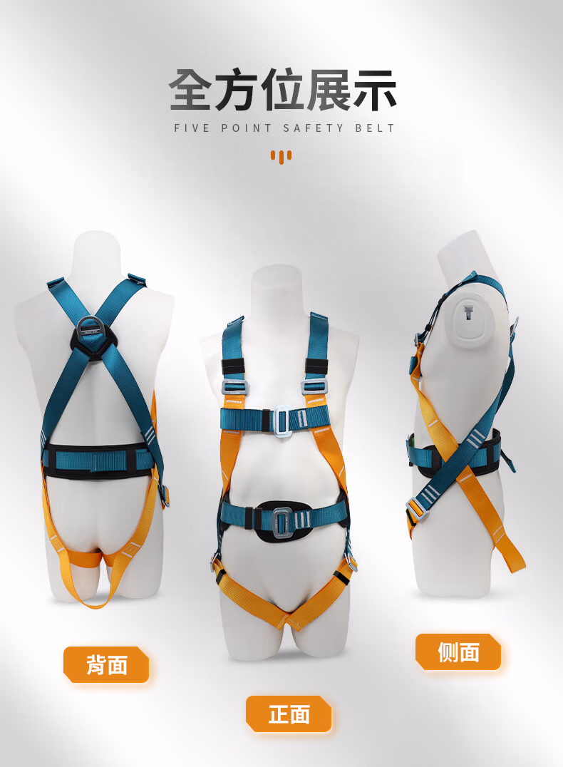 乐优佰易 五点式安全带国标安全绳高空作业 单大钩缓冲包2米