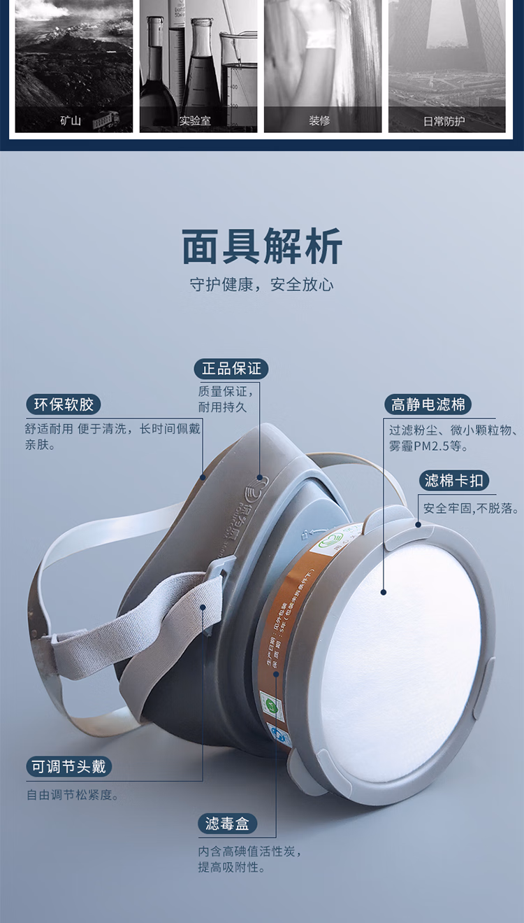 > 保为康N3600防毒面具口罩防甲醛异味装修喷漆化工粉尘活性炭防护面罩 面具1套+2滤毒盒