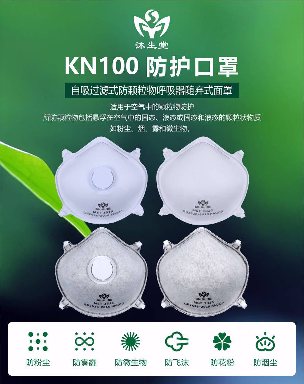沐生堂KN100杯型口罩带呼吸阀头戴式防尘透气工业粉尘焊接雾霾防护GB2626-2019新标准口罩 KN100头带有阀内衬杯型口罩(白色10个)