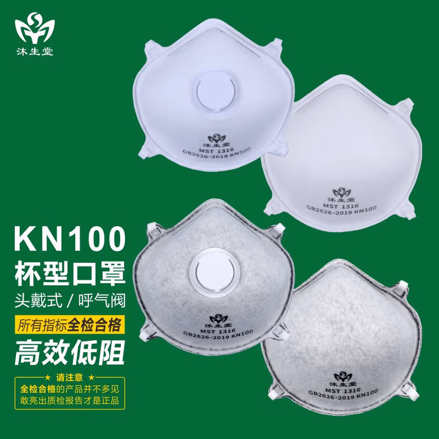 > 沐生堂KN100杯型口罩带呼吸阀头戴式防尘透气工业粉尘焊接雾霾防护GB2626-2019新标准口罩 KN100头带有阀内衬杯型口罩(白色10个)