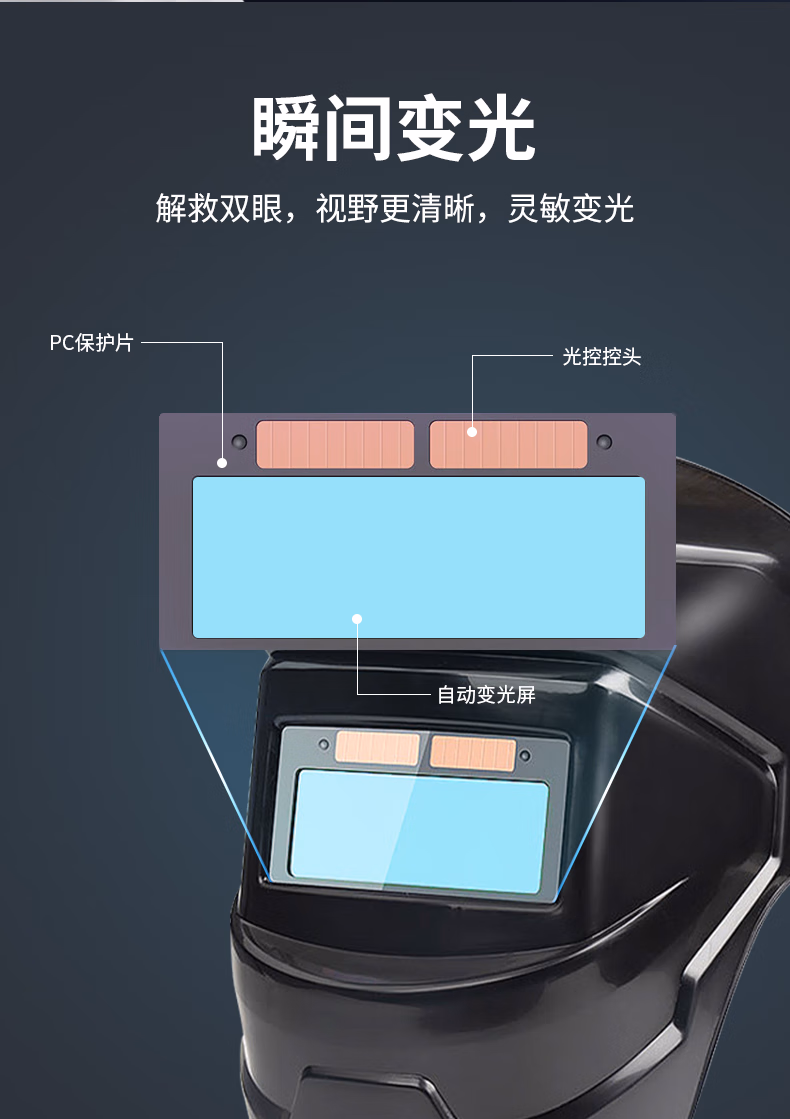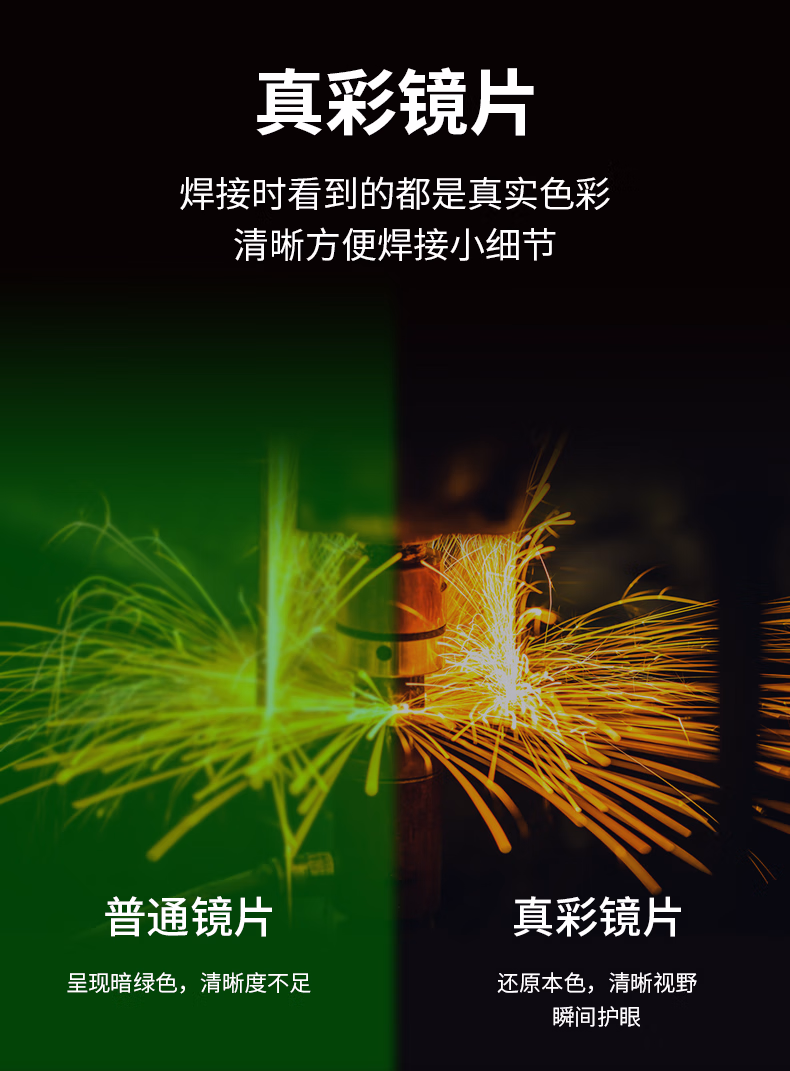 > 乌斯京电焊面罩自动变光自动电焊专用焊接头套防护焊帽罩 真彩变光款一体电焊面罩