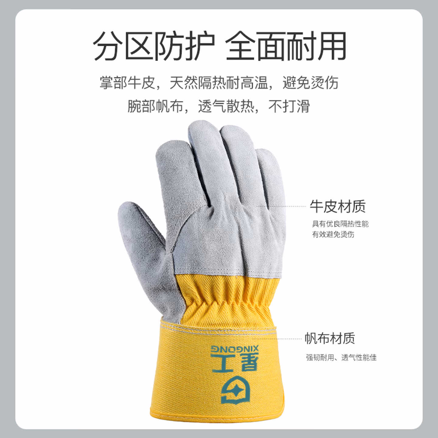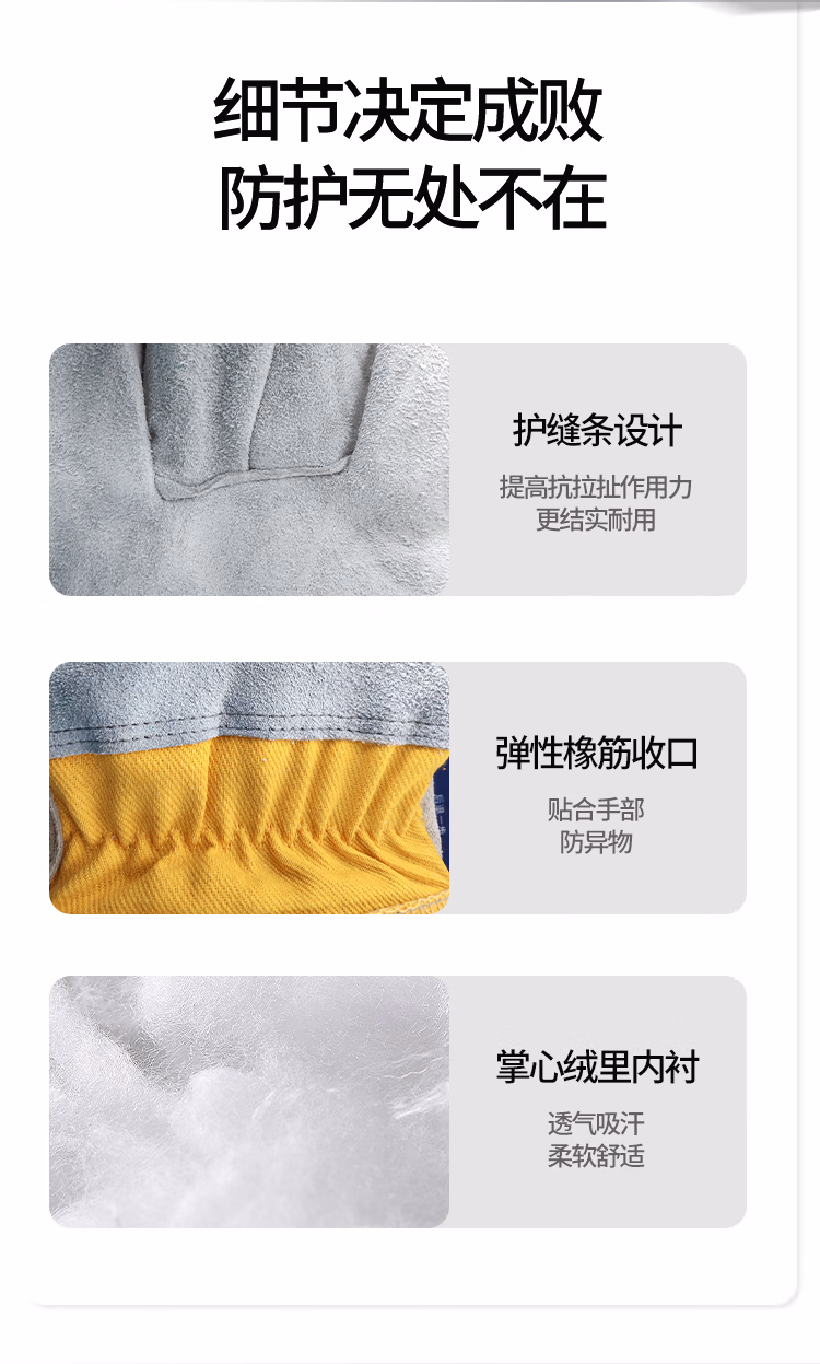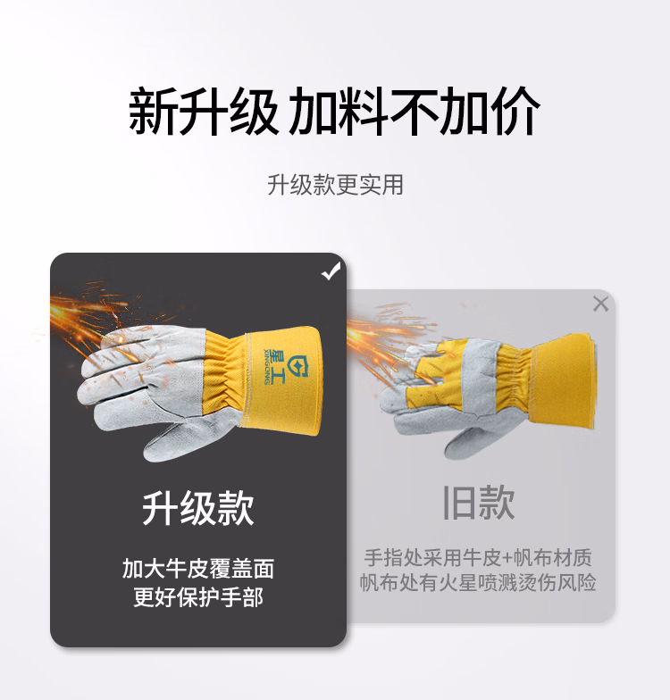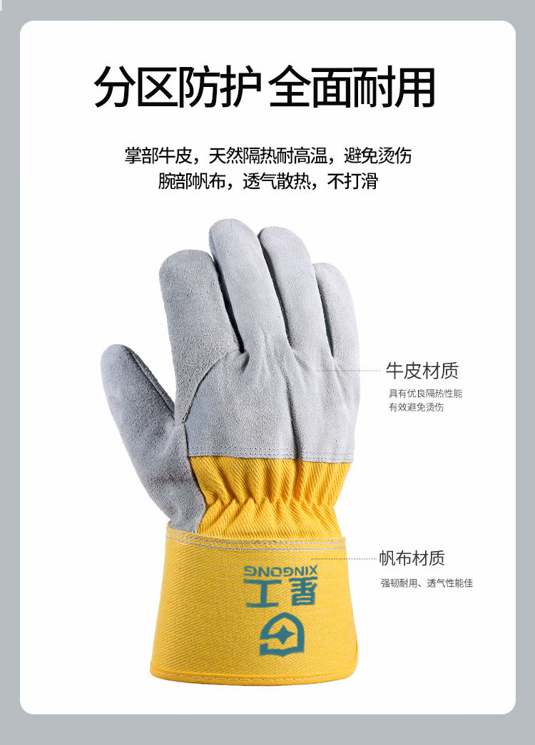 > 星工焊工手套电焊手套耐磨牛皮防烫隔热耐高温防火星飞溅劳保长款手套XGS-P6 1付装