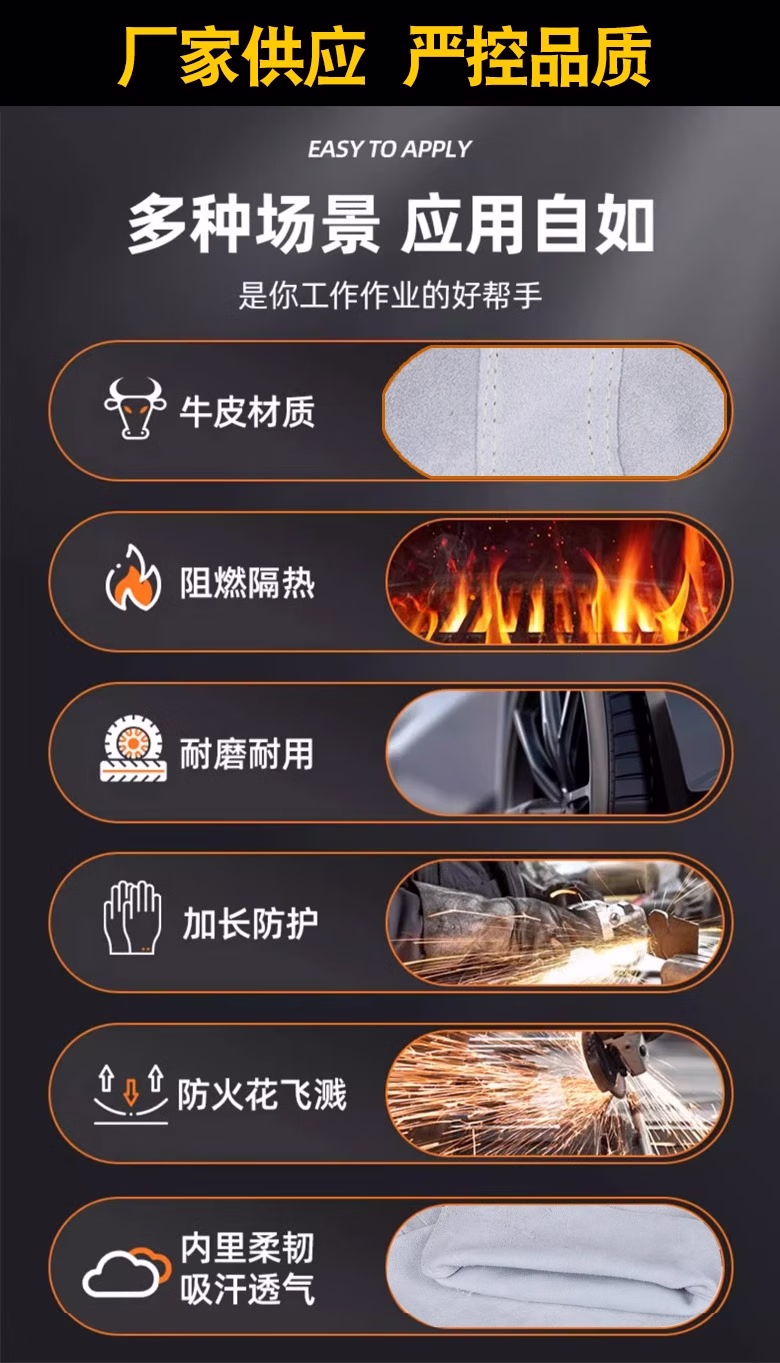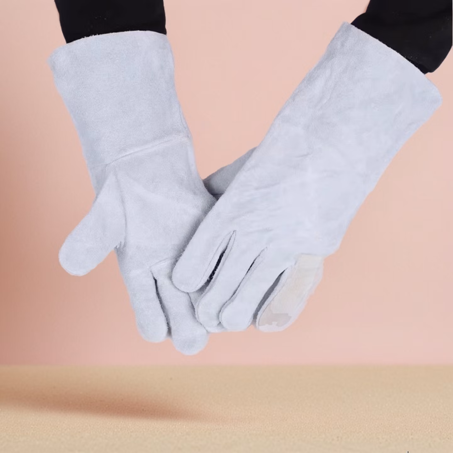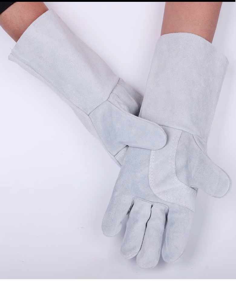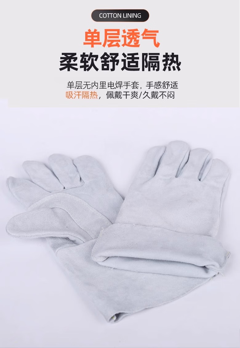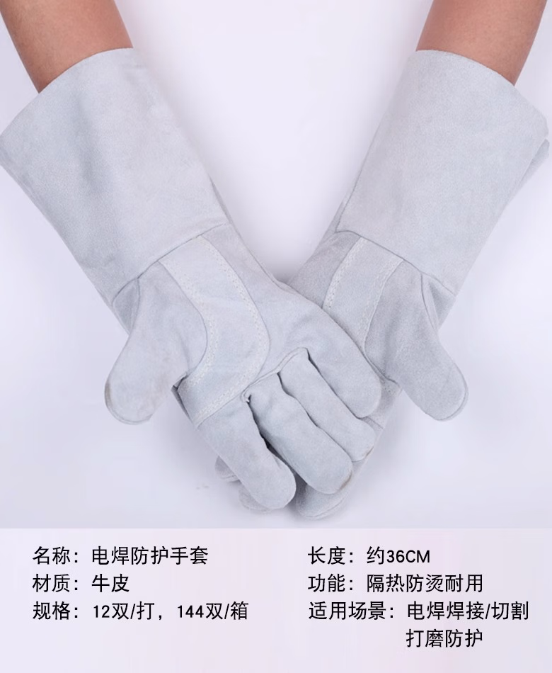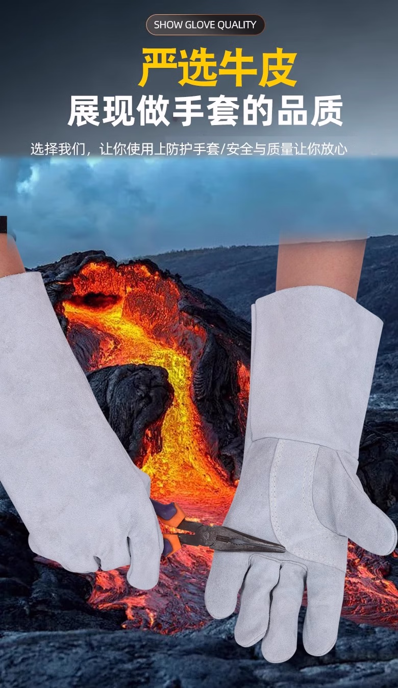 > 电焊手套无缝耐磨防烫耐高温焊工专用加厚隔热长款牛皮柔软二保焊 本色双层33厘米(1双) 均码
