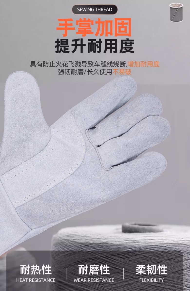 电焊手套无缝耐磨防烫耐高温焊工专用加厚隔热长款牛皮柔软二保焊 本色双层33厘米(1双) 均码