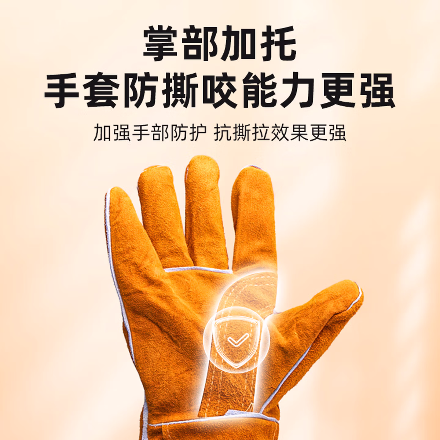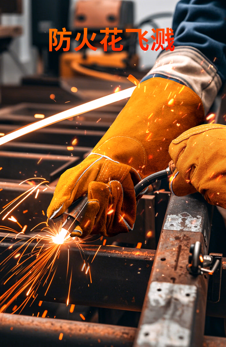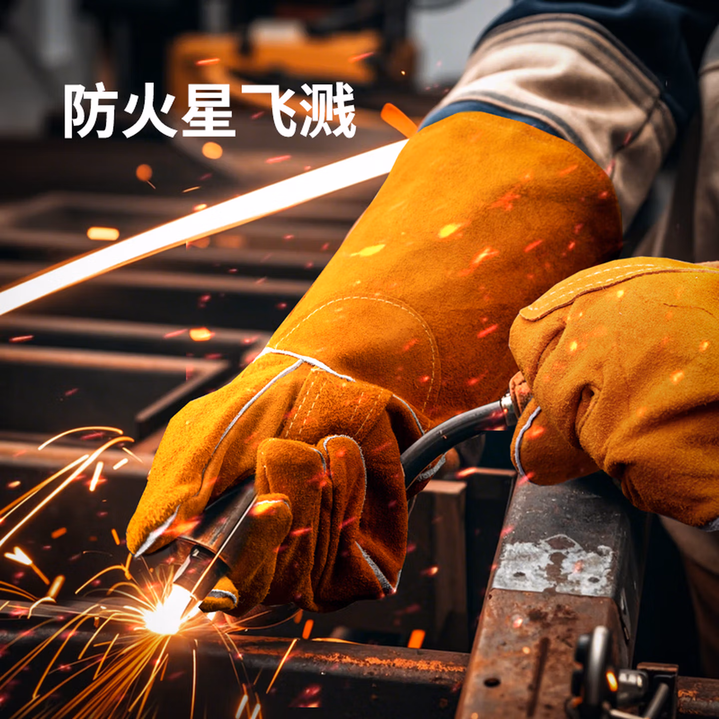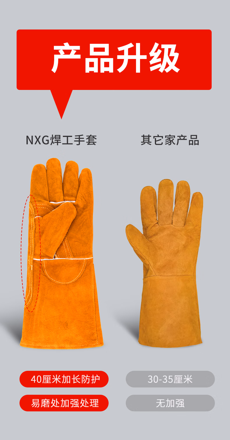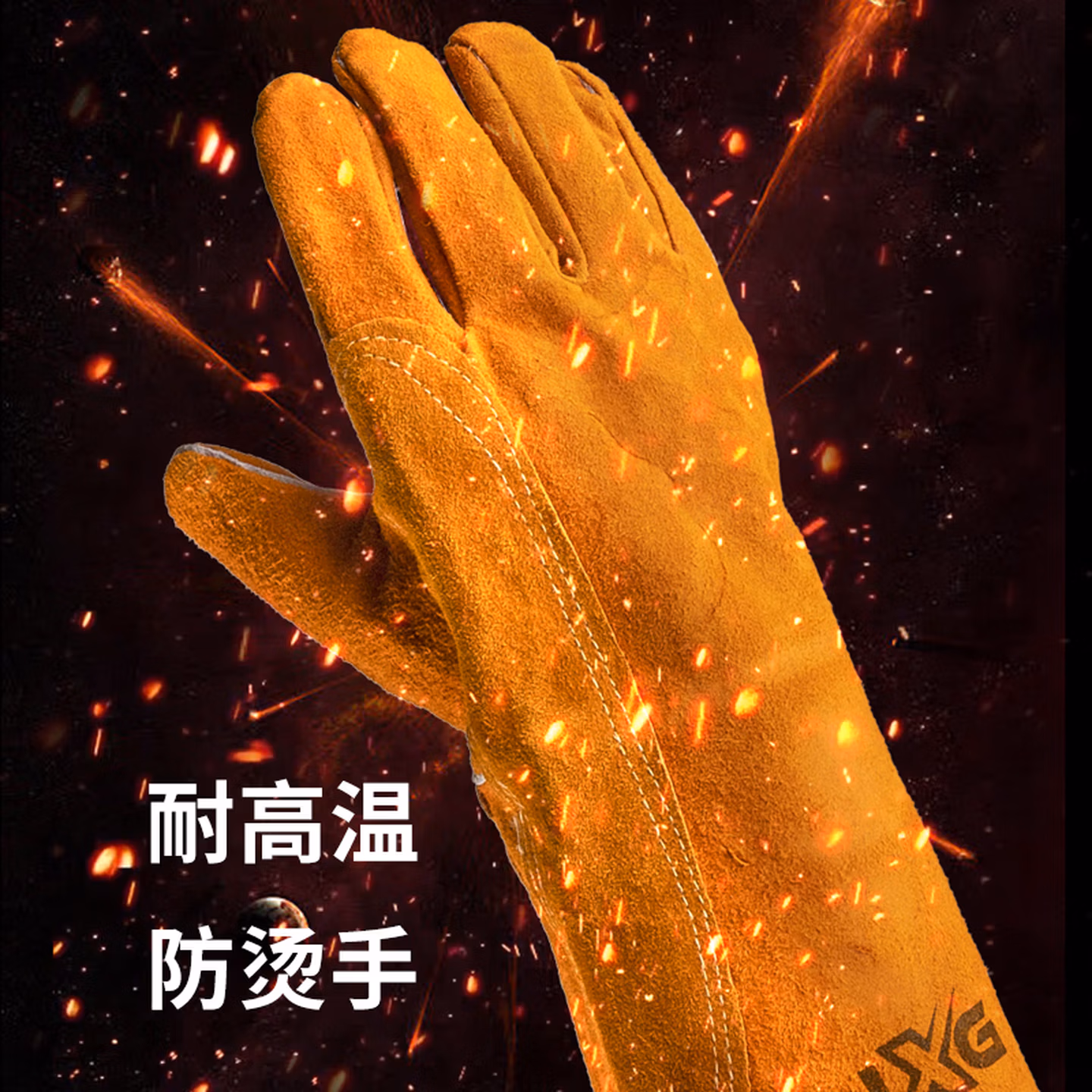 > NXG 牛皮电焊手套 加厚加长耐磨耐高温全皮焊工隔热防烫防电弧火花焊接劳保手套 牛皮焊工手套【1双】长款