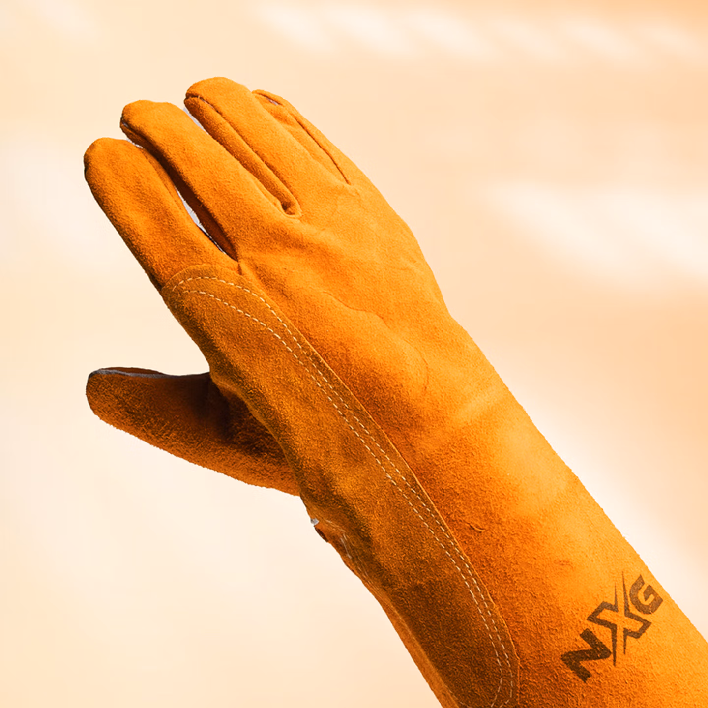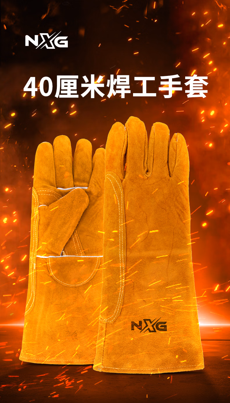 NXG 牛皮电焊手套 加厚加长耐磨耐高温全皮焊工隔热防烫防电弧火花焊接劳保手套 牛皮焊工手套【1双】长款