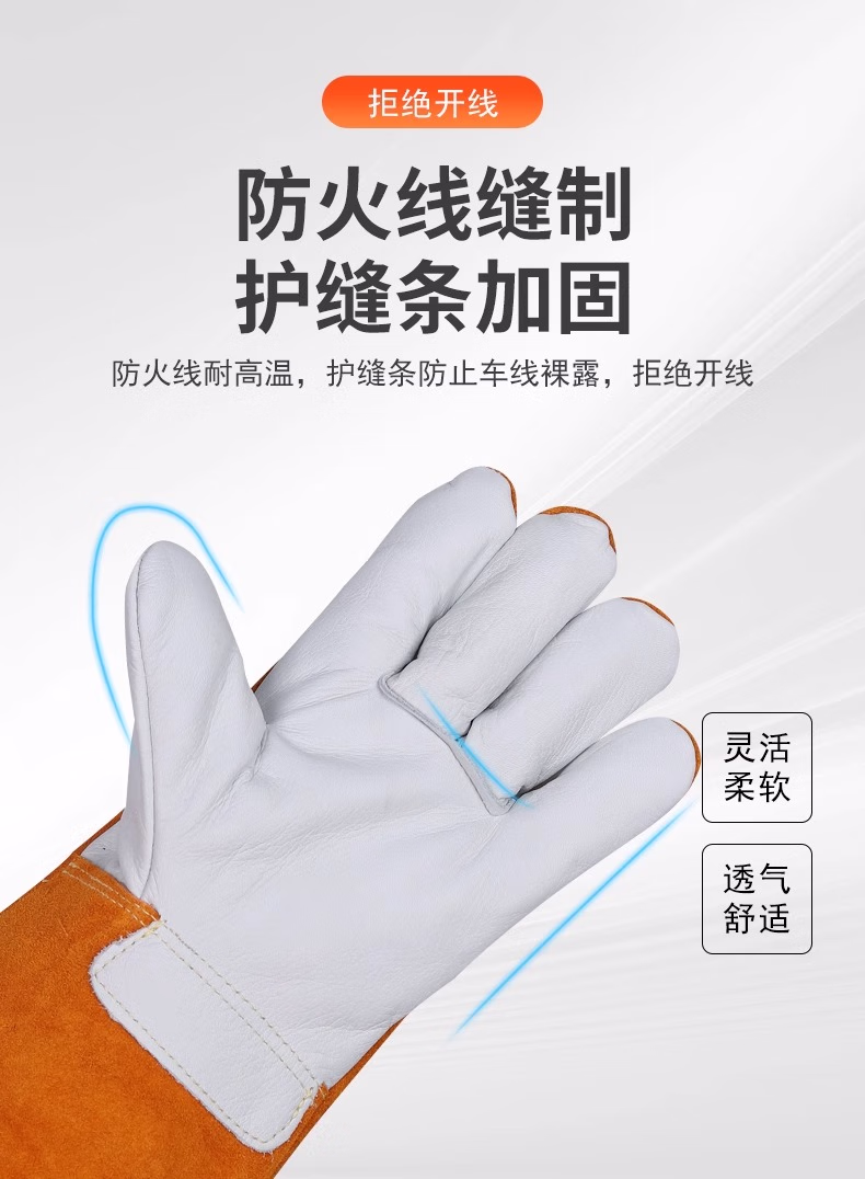 > 佳护短款头层牛皮电焊手套焊工焊接软隔热耐高温耐用劳保防护手套 头层海员手套 L