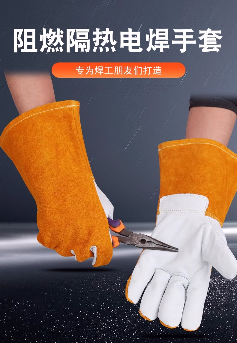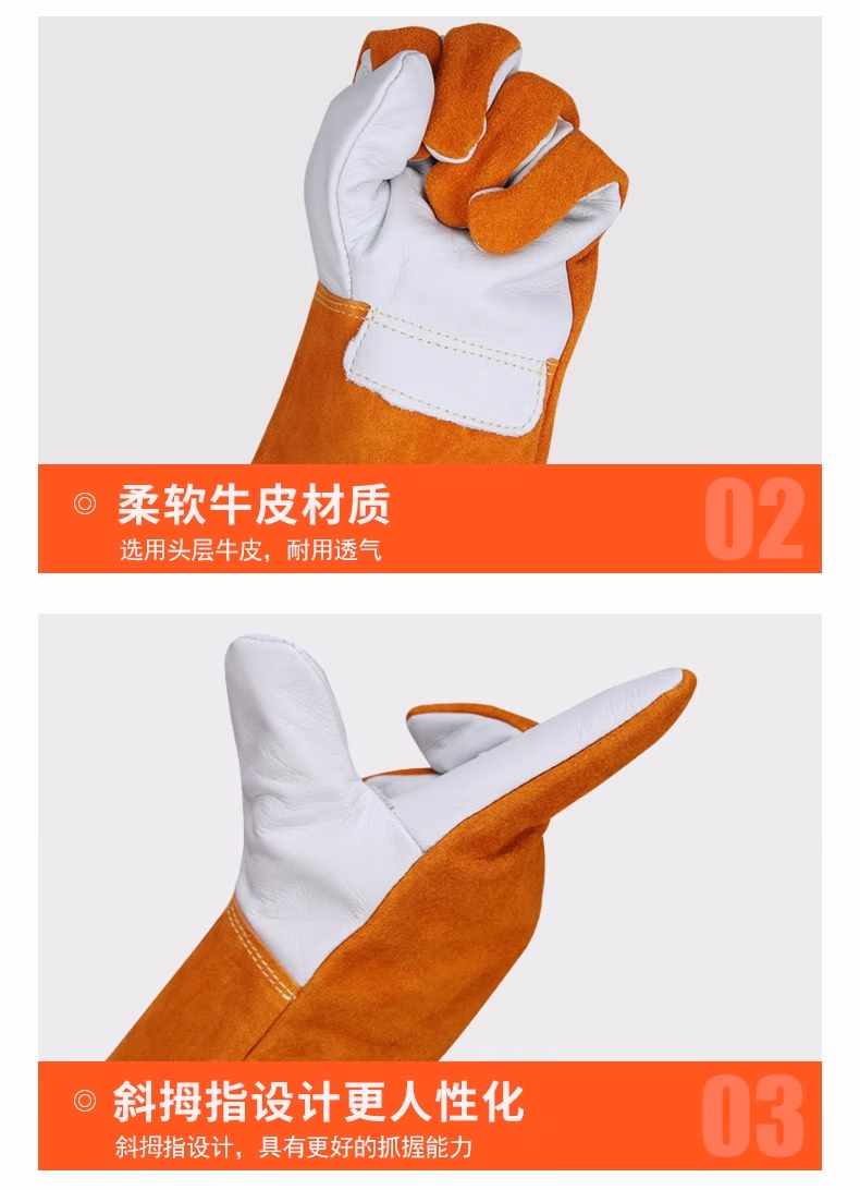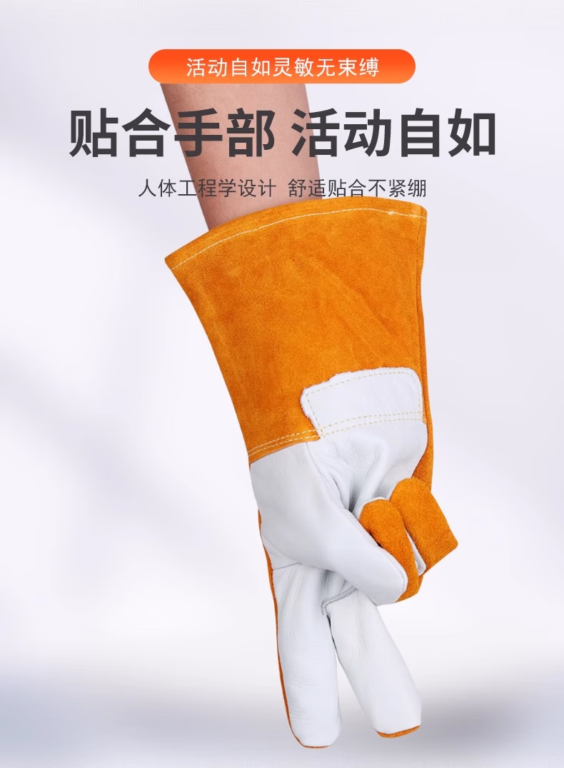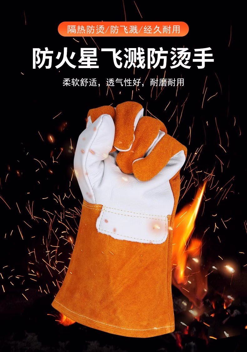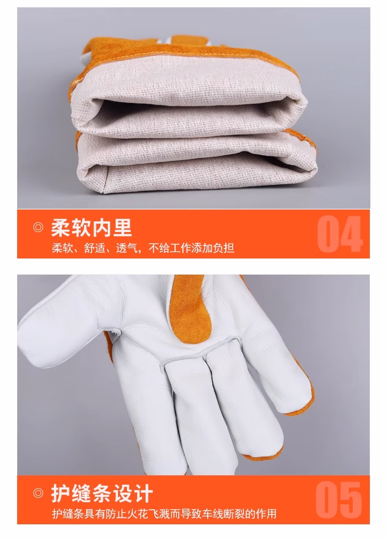 佳护短款头层牛皮电焊手套焊工焊接软隔热耐高温耐用劳保防护手套 头层海员手套 L