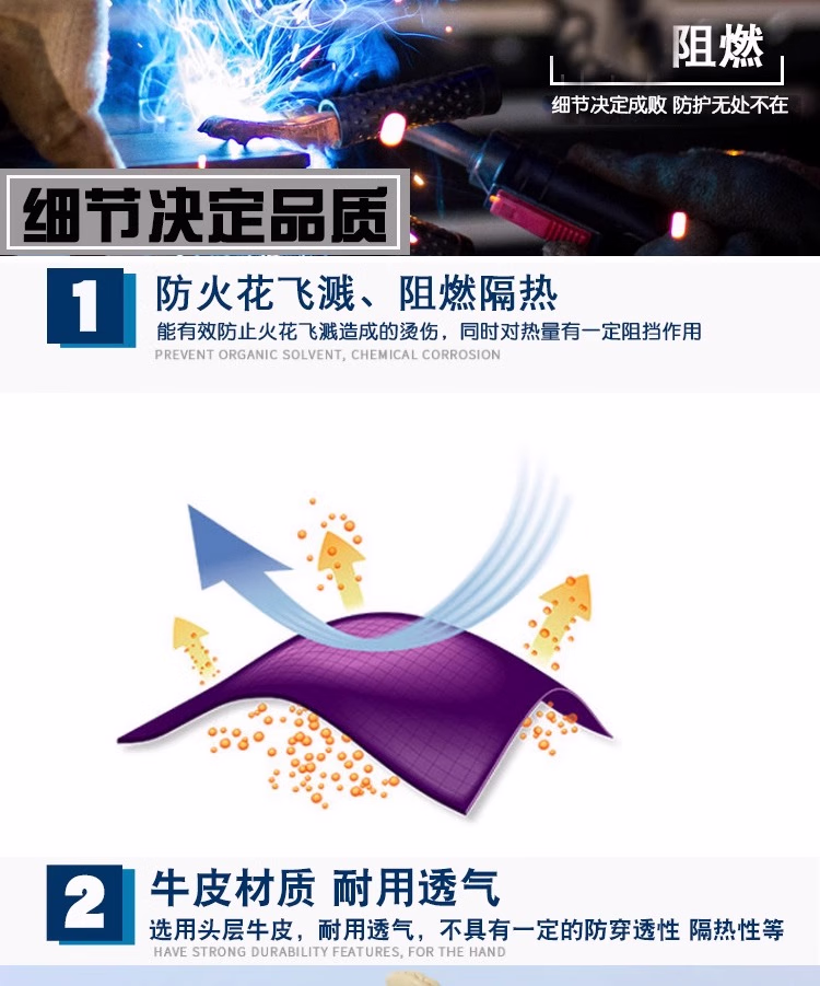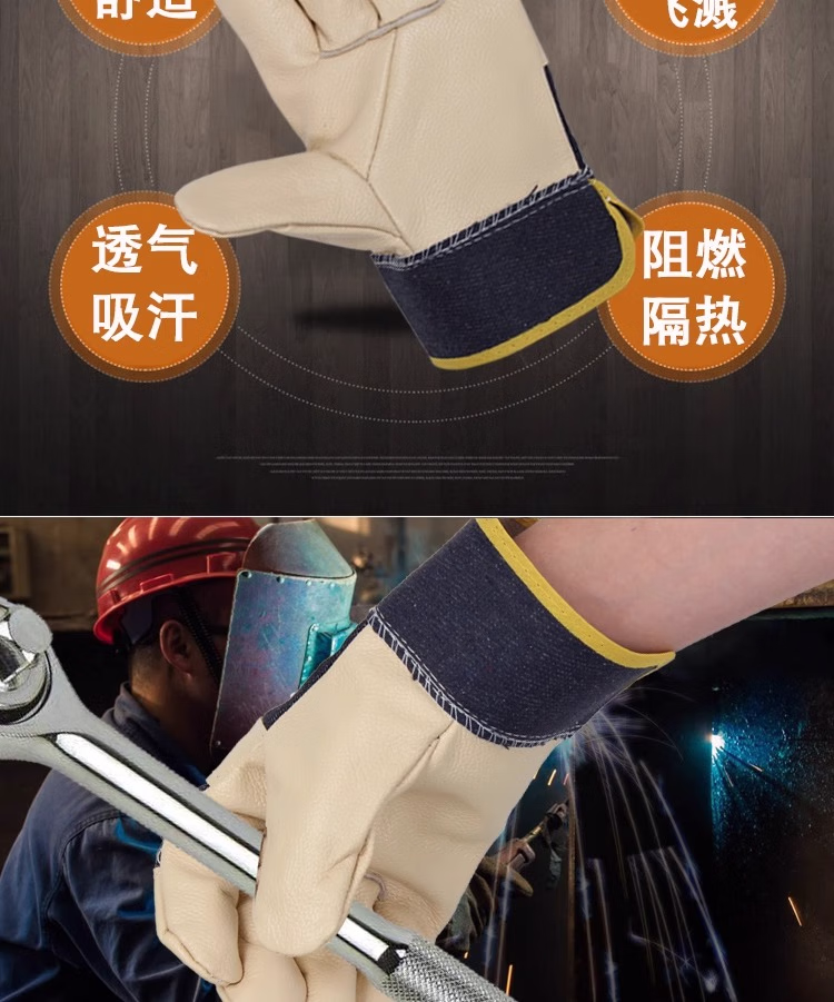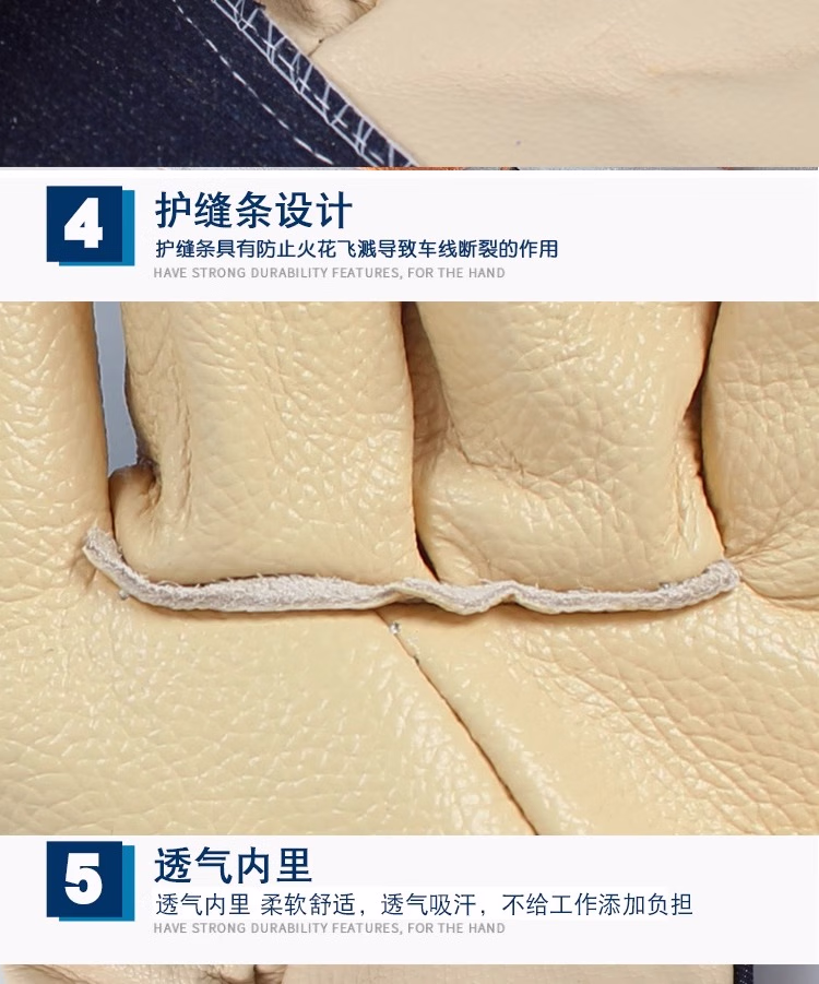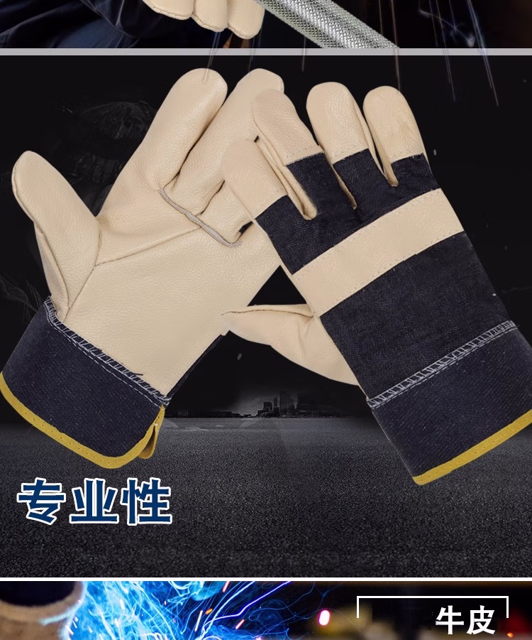佳护短款头层牛皮电焊手套焊工焊接软隔热耐高温耐用劳保防护手套 浅色七刀系列:12双 L