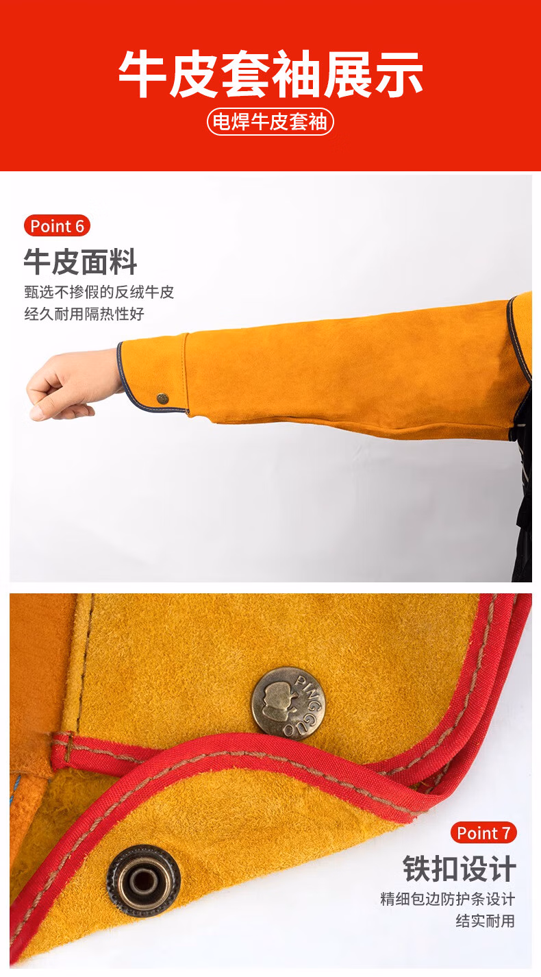 > 首盾 电焊工防护用品牛皮护脚套防烫防飞溅披肩帽电焊工作服围裙焊衣套袖护袖 【防烫防溅】护袖