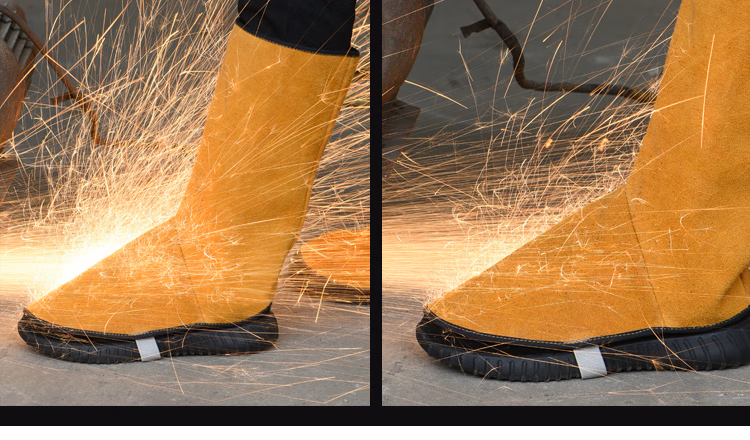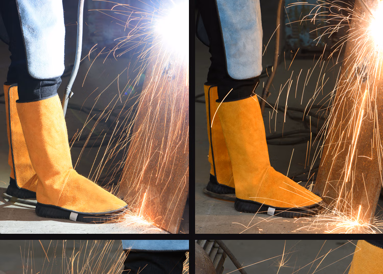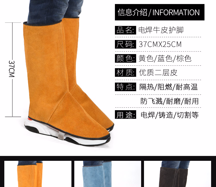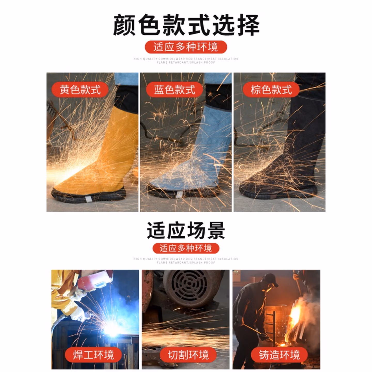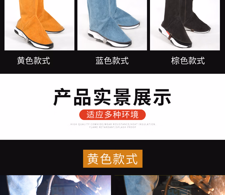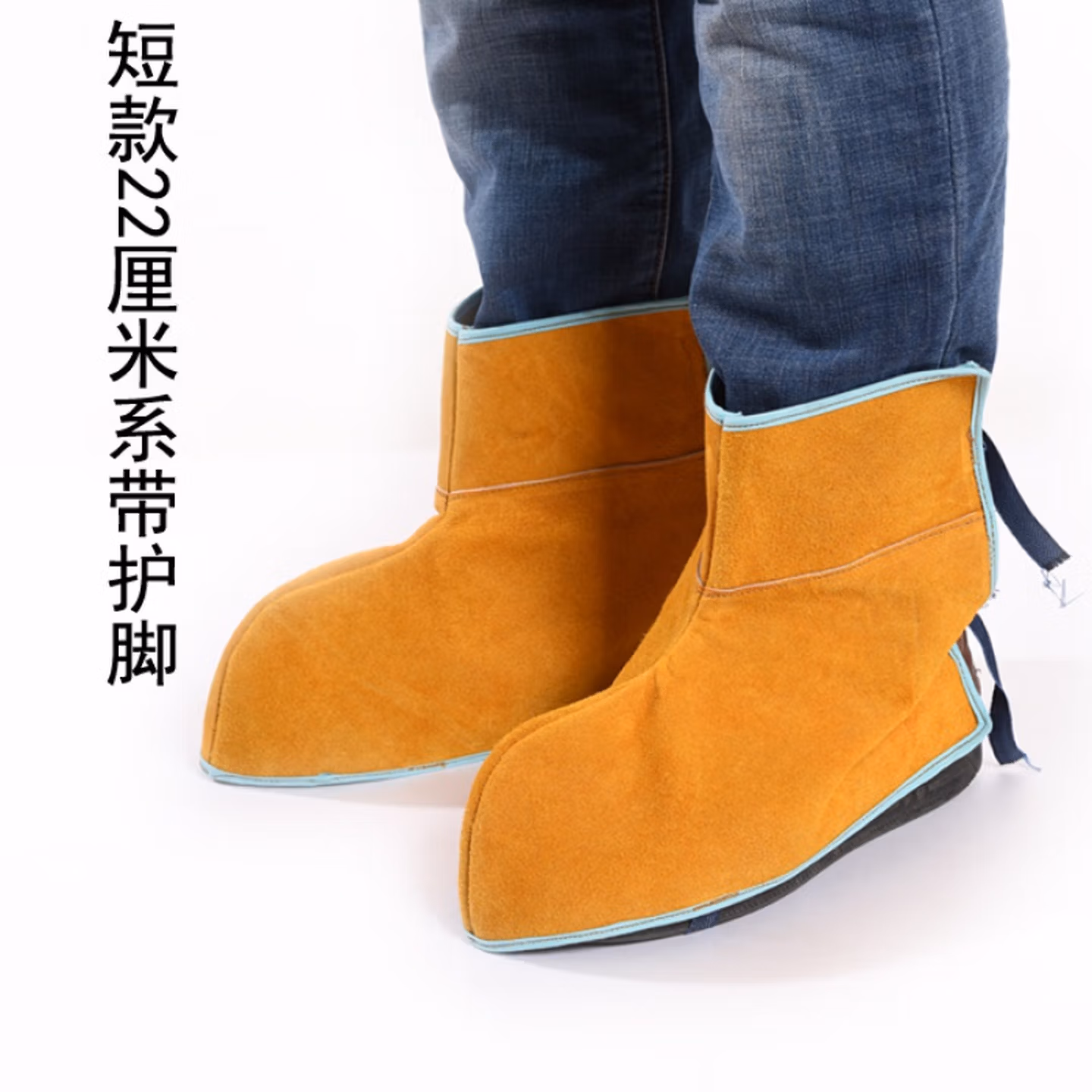 > 牛皮电焊护脚盖 焊工护腿 护脚 脚罩 鞋套防烫劳保 焊工防护装备 深棕色牛皮(筒高32cm):魔术贴款
