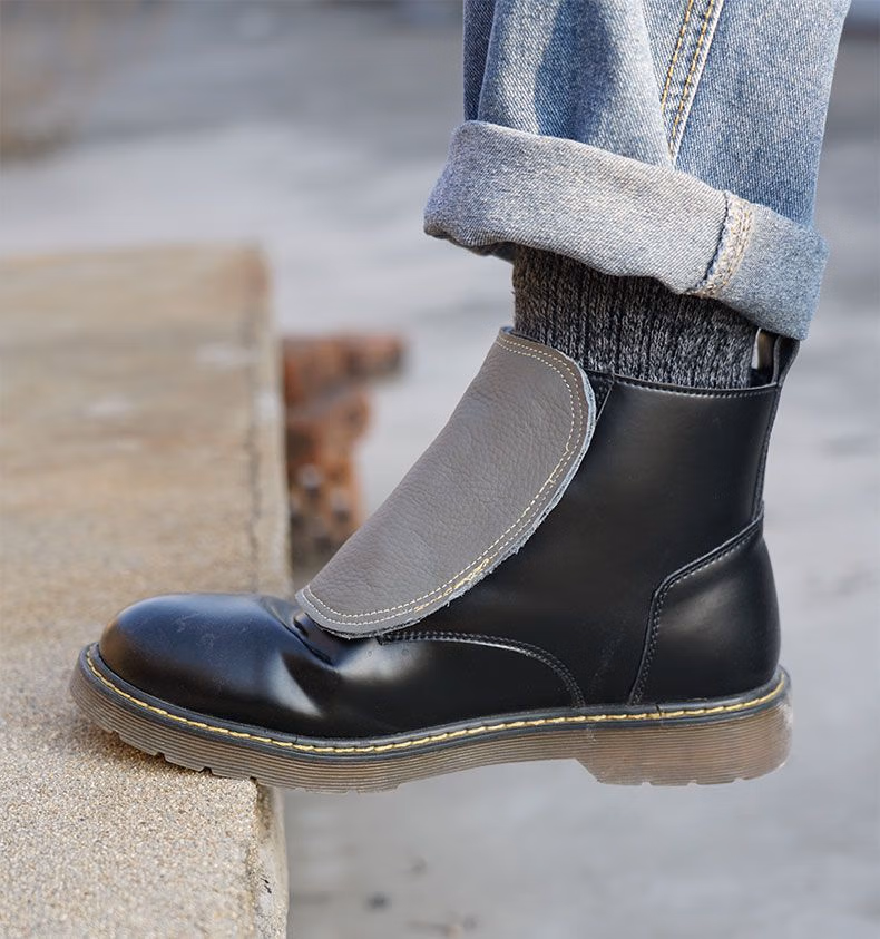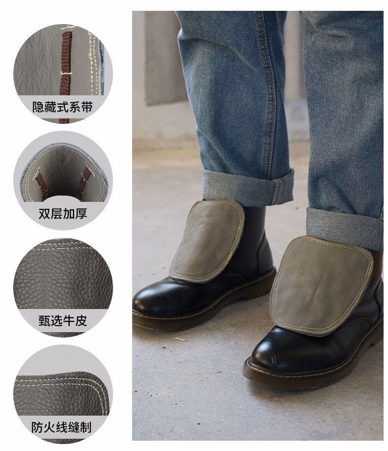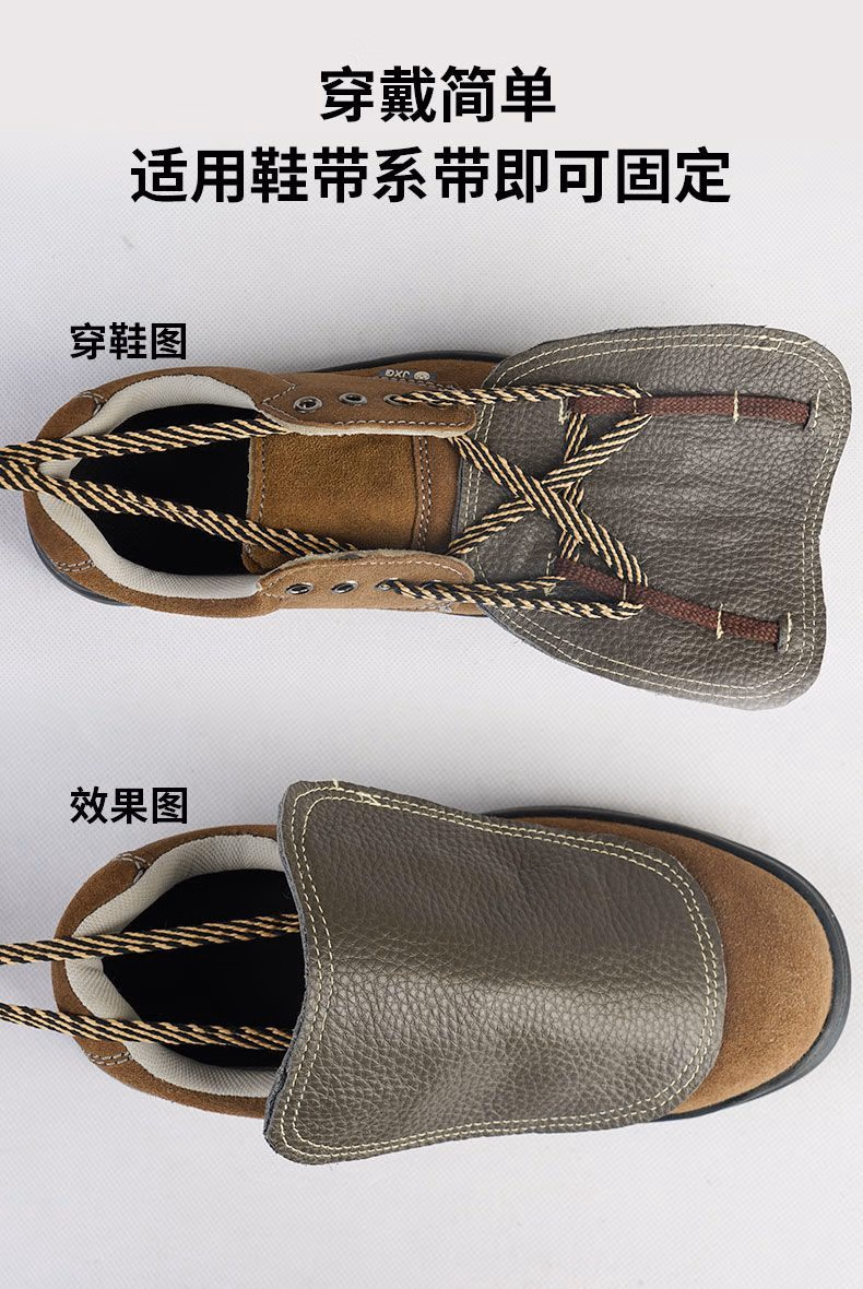 > 牛皮电焊护脚套焊工护脚盖二保焊防火花烧不烂加厚防烫耐高温透气 深棕色系带护脚(短款) 牛皮
