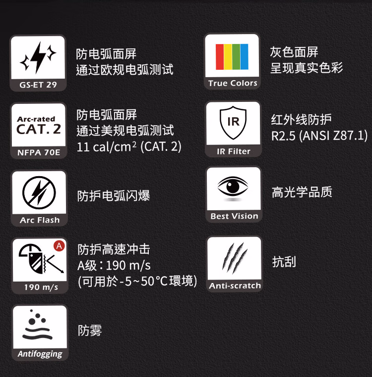 > 蓝鹰 防电弧伤害面屏11.3卡FCA8 防冲击防飞溅防护面罩防电弧闪爆伤害绝缘配帽式(不含安全帽) 基础款FCA8(11.3cal) 均码