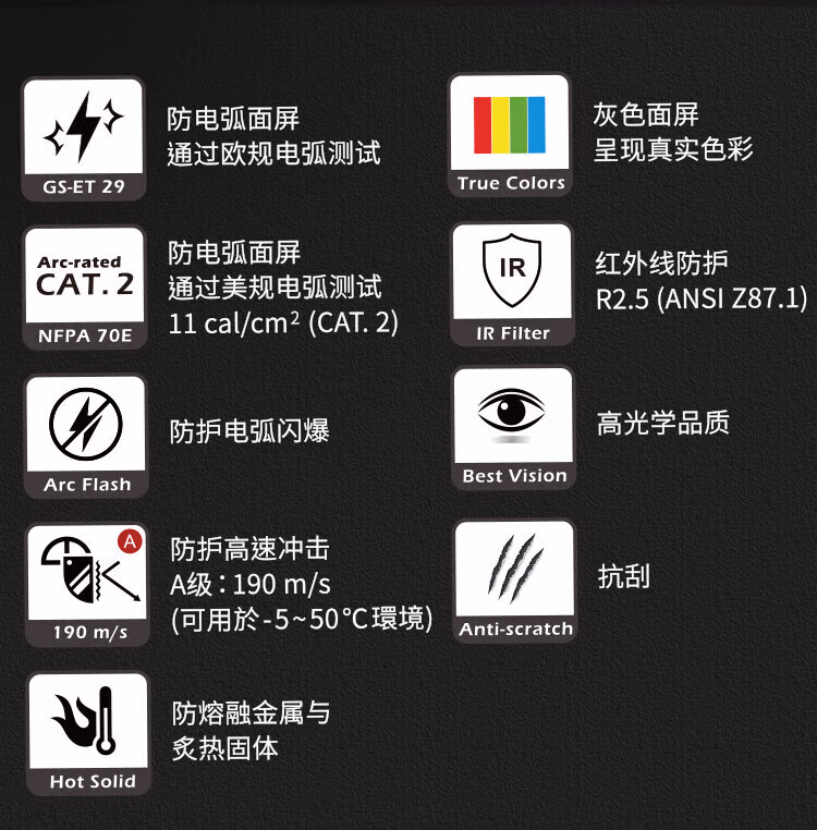 > 适用防电弧面屏FCA8防电弧面罩11.3cal高压头盔11.3卡欧美标Z 透明款头戴式 无卡值欧标美标认