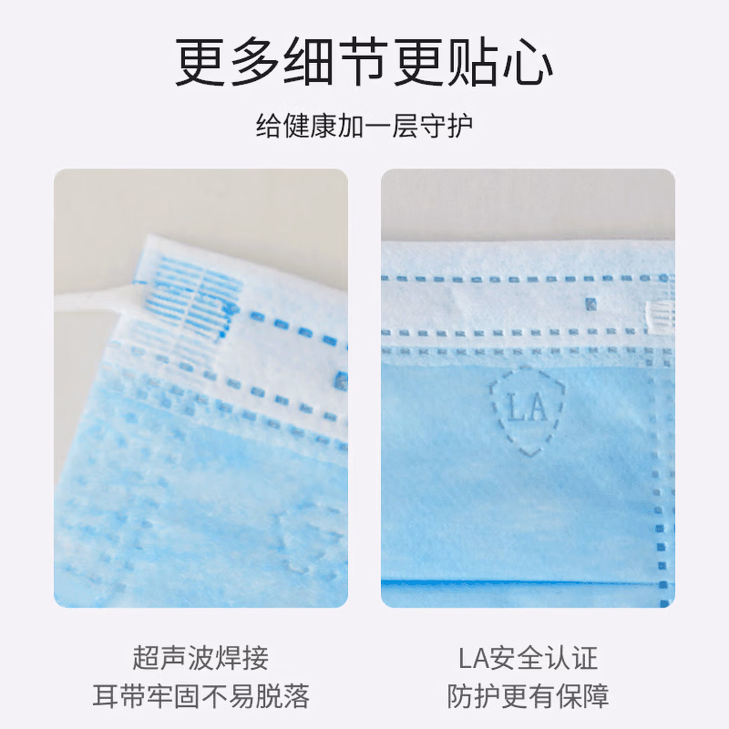 冠桦 E1103 一次性防护口罩1盒50只 蓝色 舒适透气三层防护过滤效率大于95%成人防护口罩