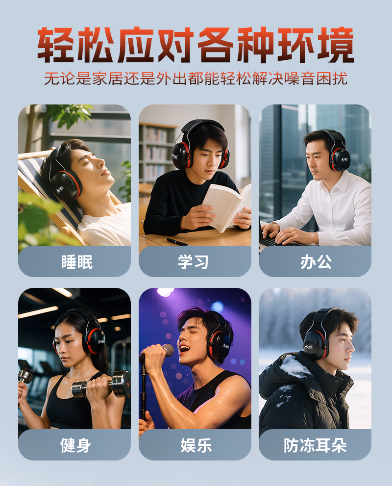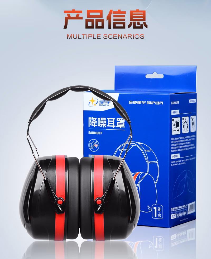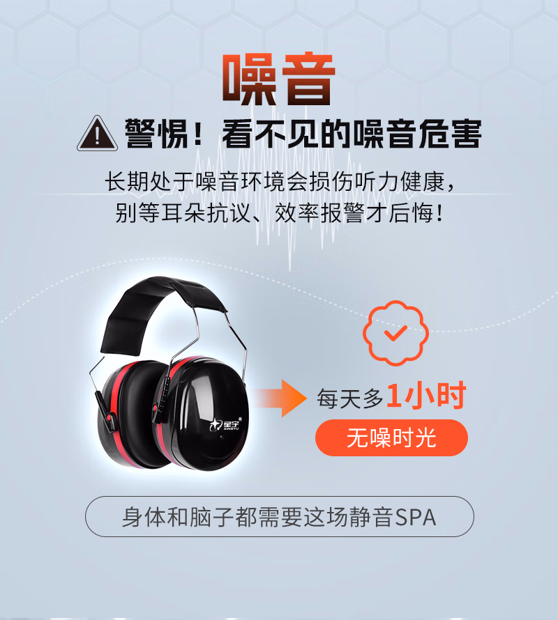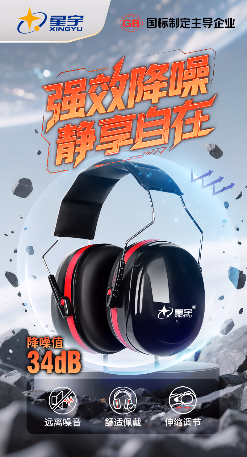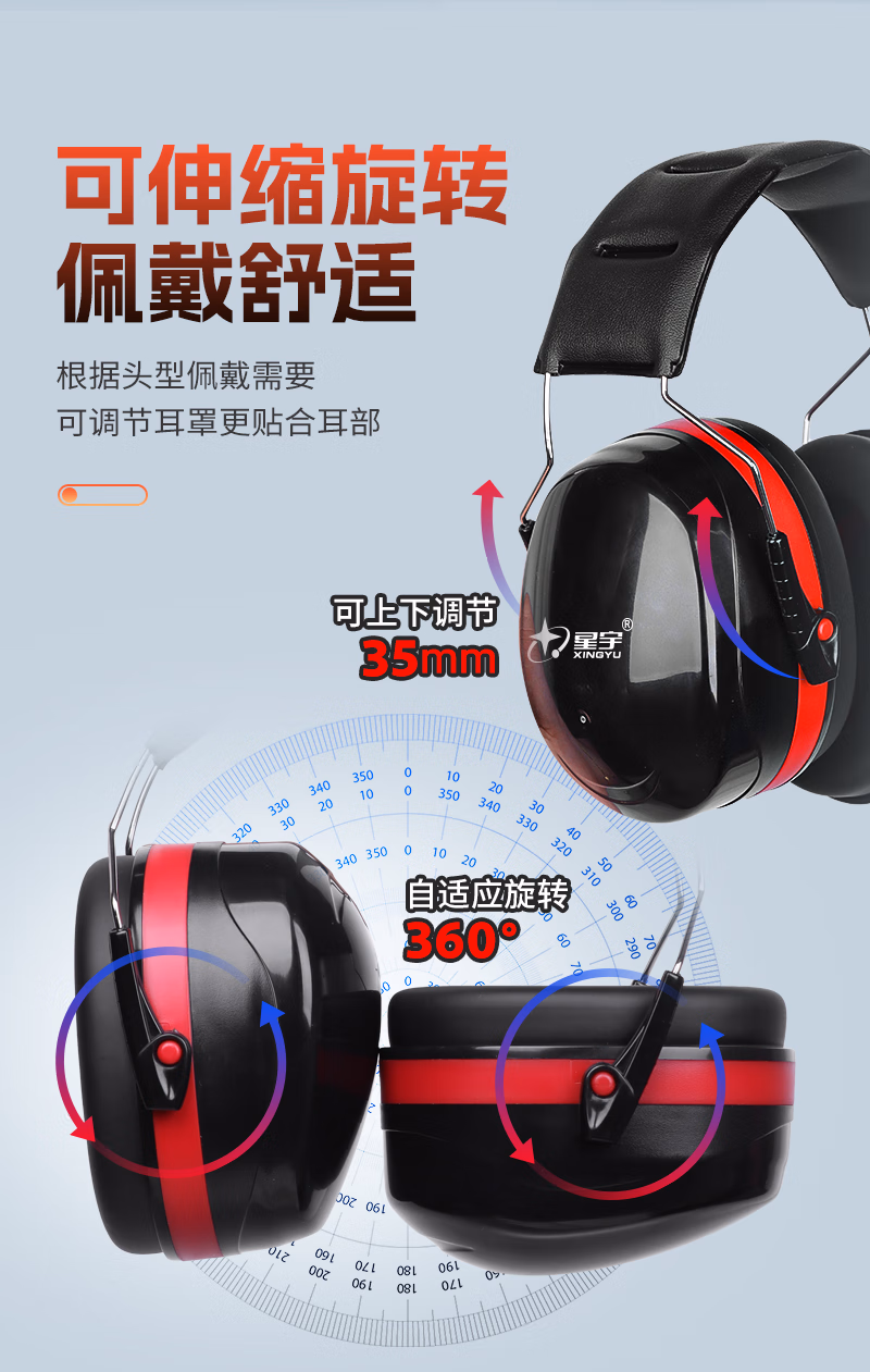 > 星宇隔音耳罩防噪音工业级款睡眠学习专用降噪头戴式神器 【国际认证】专业隔音降噪耳罩伸缩调节_云感舒适
