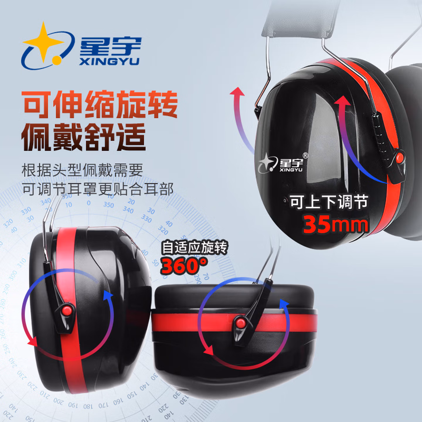 星宇隔音耳罩防噪音工业级款睡眠学习专用降噪头戴式神器 【国际认证】专业隔音降噪耳罩伸缩调节_云感舒适