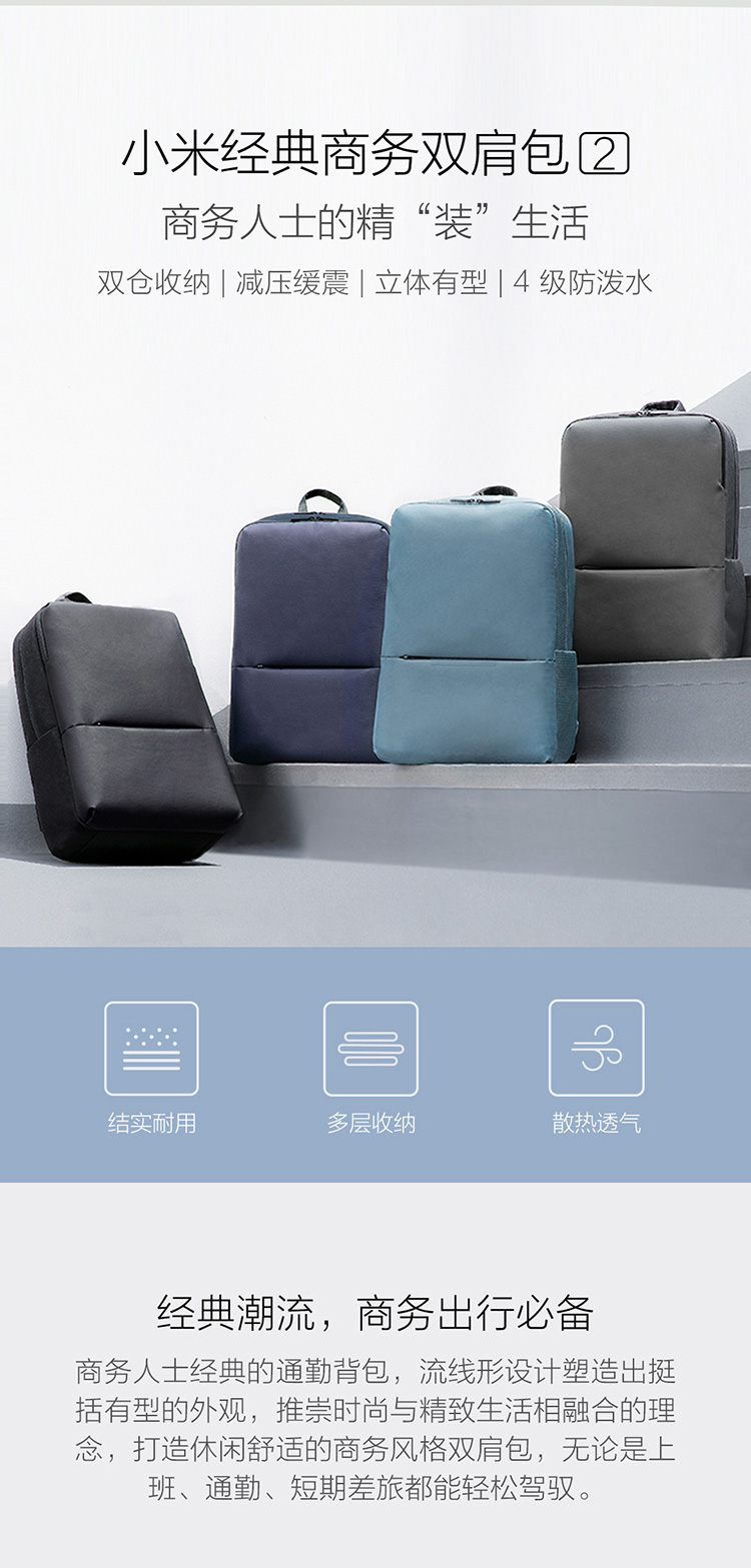 > 小米经典商务双肩包 2 黑色 双层收纳|减压缓震|立体有型