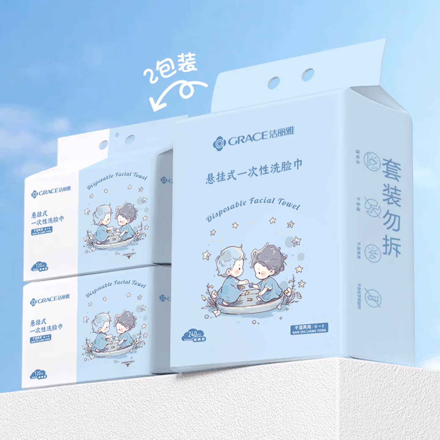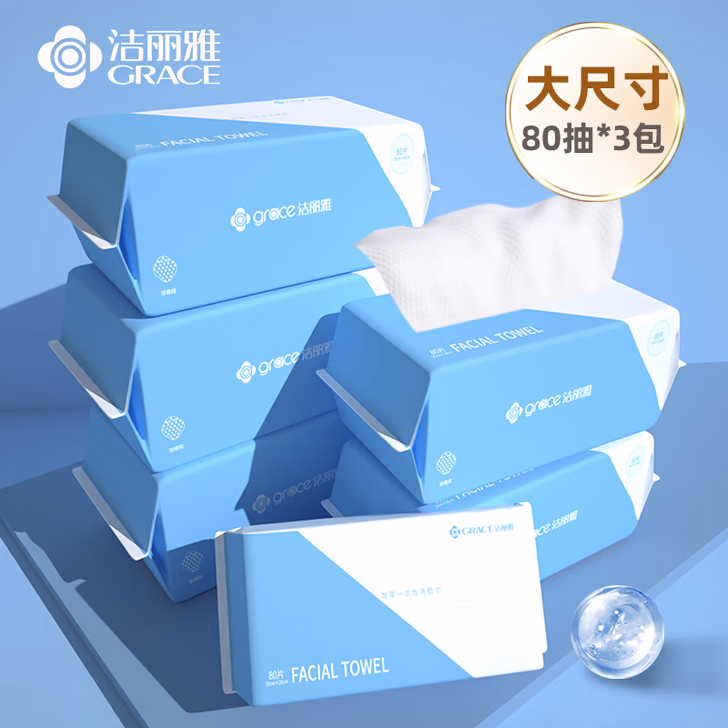 > 洁丽雅(Grace)一次性毛巾洗脸巾洗面巾洁面巾擦脸巾3连包 20*20cm 80片/包