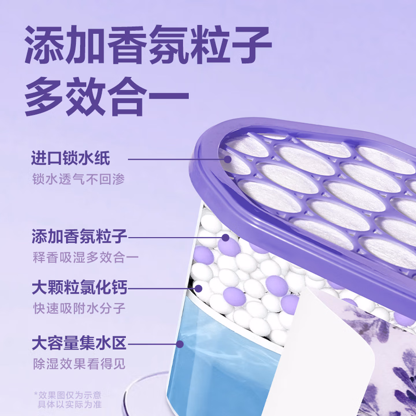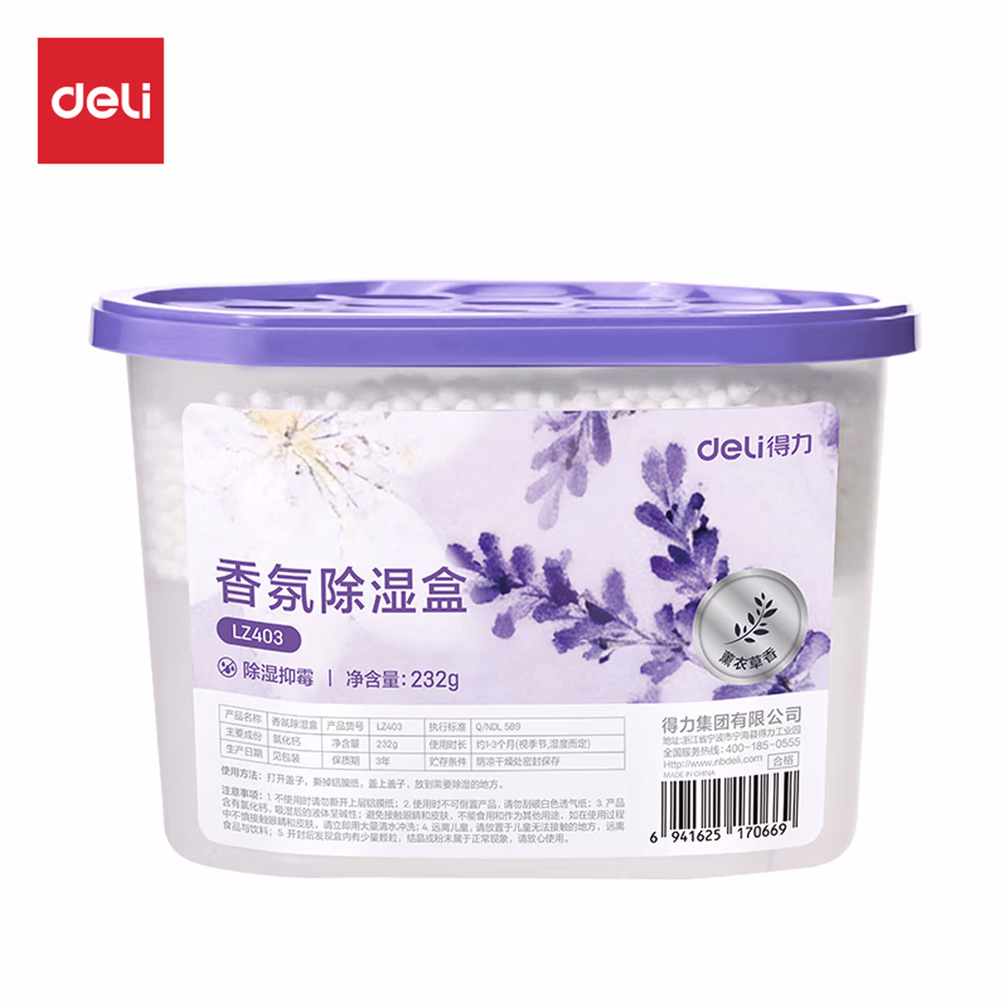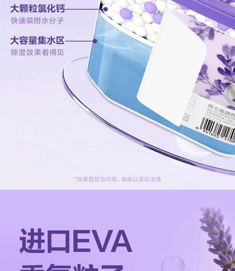 > 得力(deli)薰衣草除湿盒干燥剂室内衣柜衣服除湿剂防潮除霉剂珠吸湿500ml*3盒 LZ403