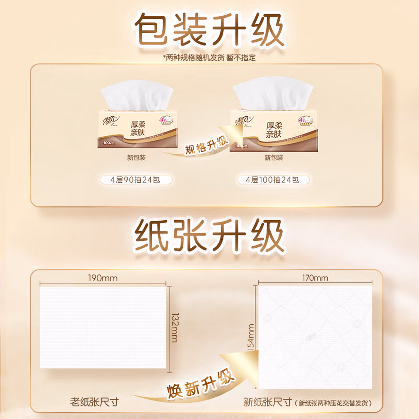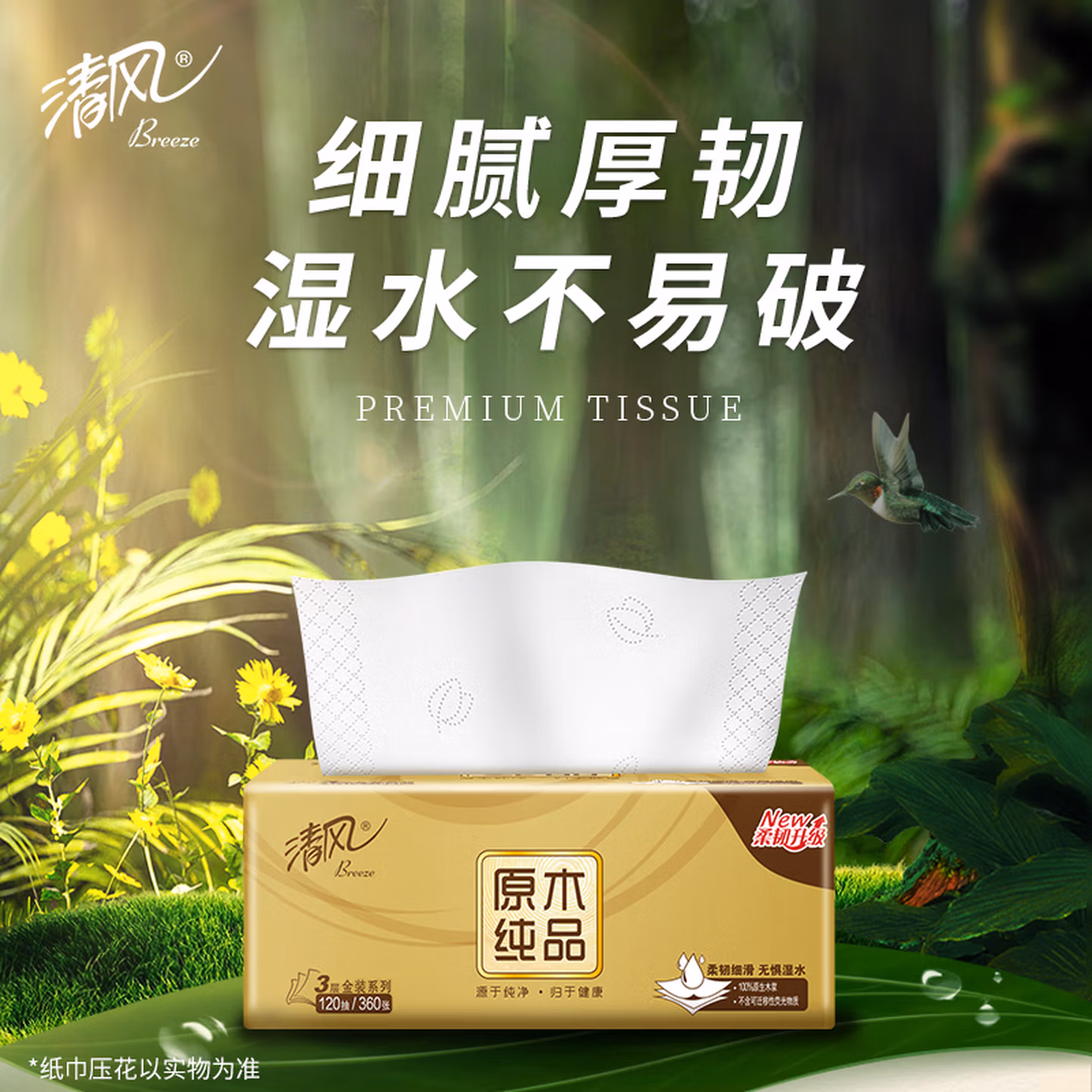 清风【李昀锐同款】 抽纸 金装3层120抽*24包 纸巾抽餐巾纸 抽纸整箱