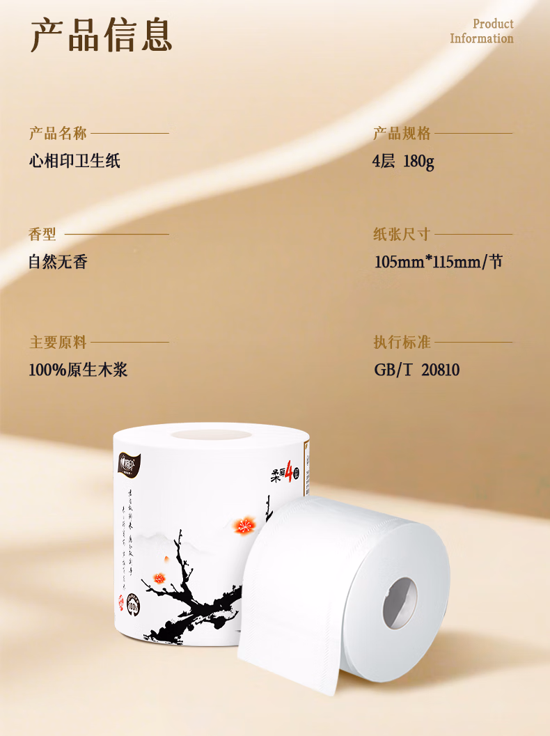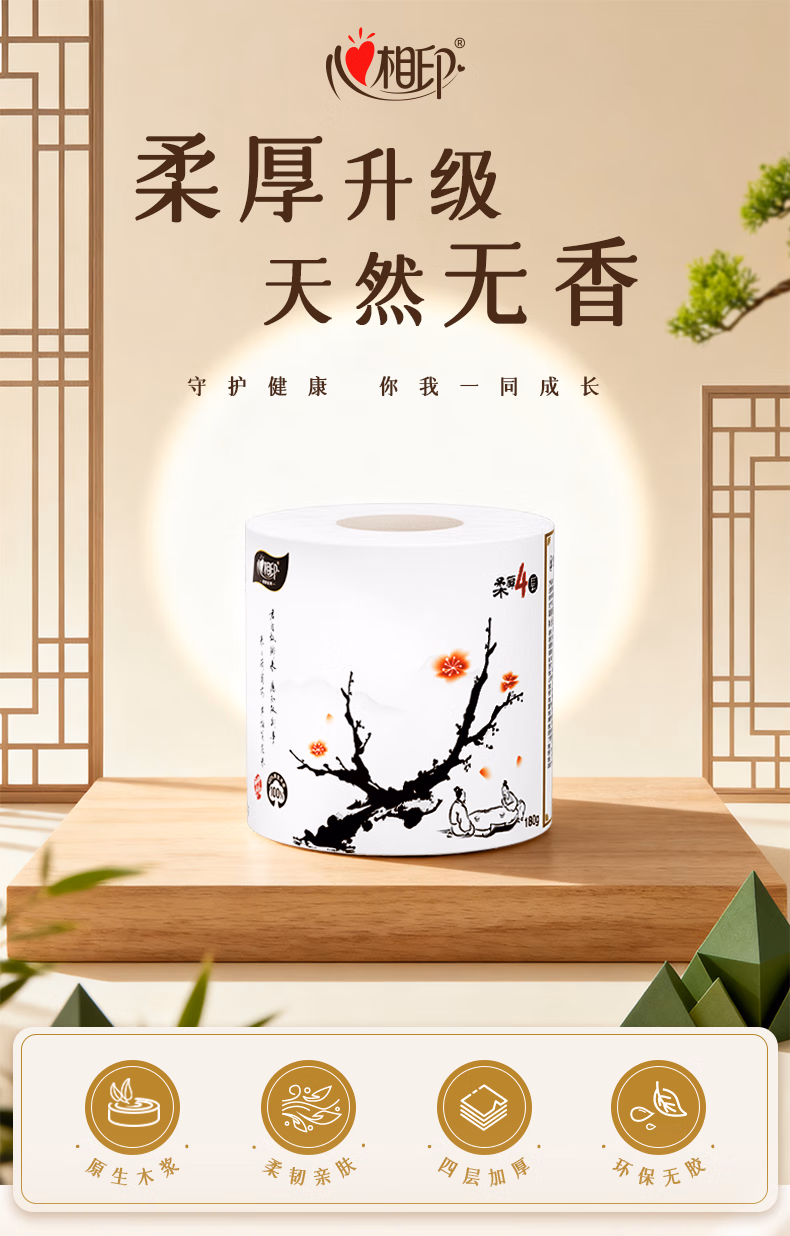 > 心相印卷纸卫生纸有芯卷筒纸巾4层加厚家用卷纸180克大克重厕纸可冲散 4层 180g/卷*24卷 囤货装