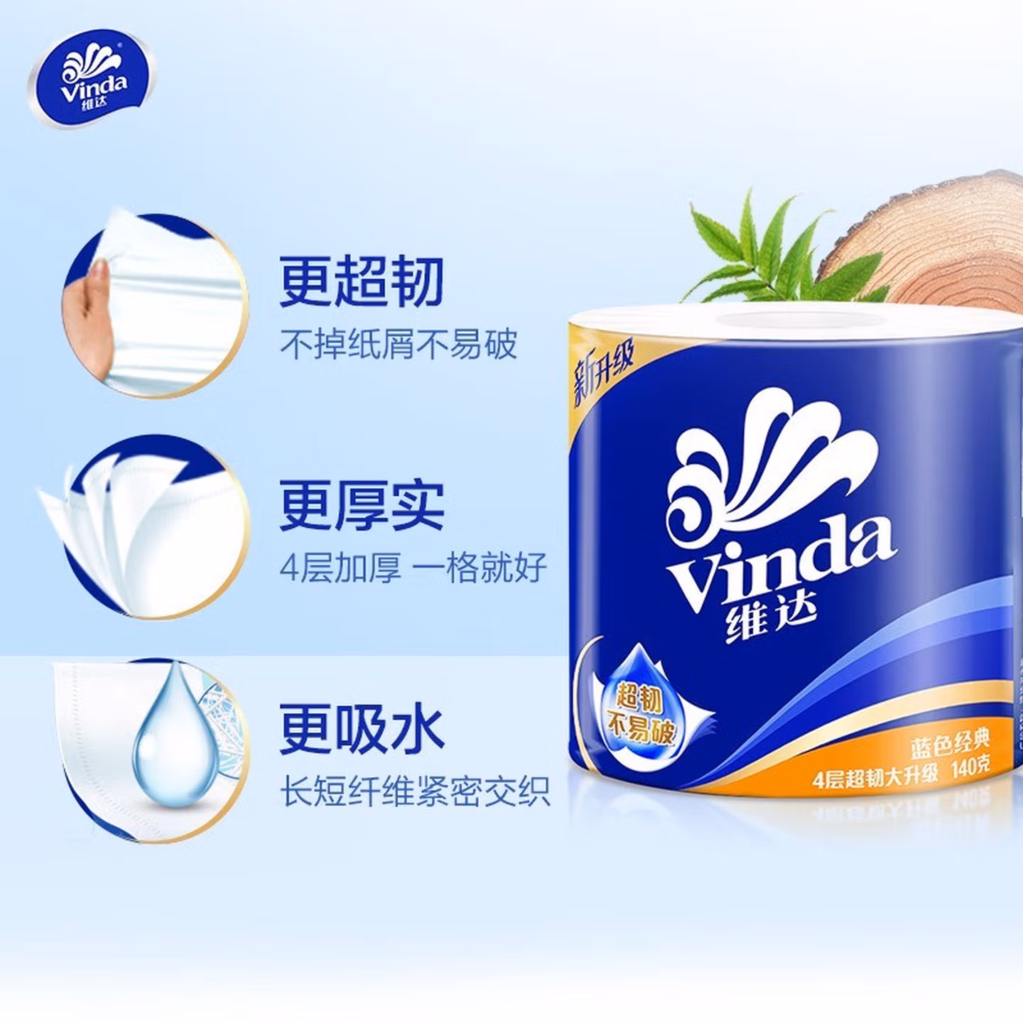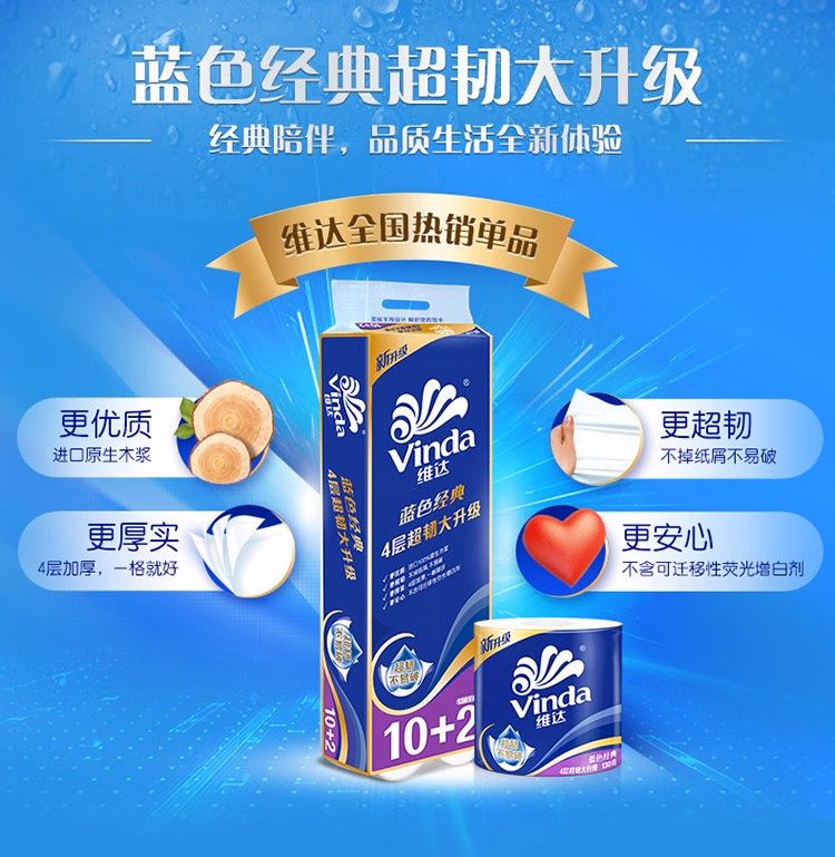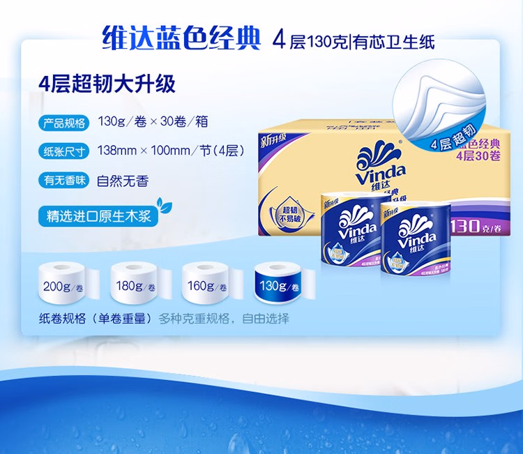 维达(Vinda)卷纸 4层加厚有芯卷筒纸卫生纸 厕纸家庭实惠装蓝色经典纸巾 有芯卷纸30卷整箱维达卷纸 4层加厚有芯卷筒纸卫生纸 厕纸家庭实惠装蓝色经典纸巾 维达有芯卷纸30卷(整箱)(维达有芯卷纸30卷(整箱))