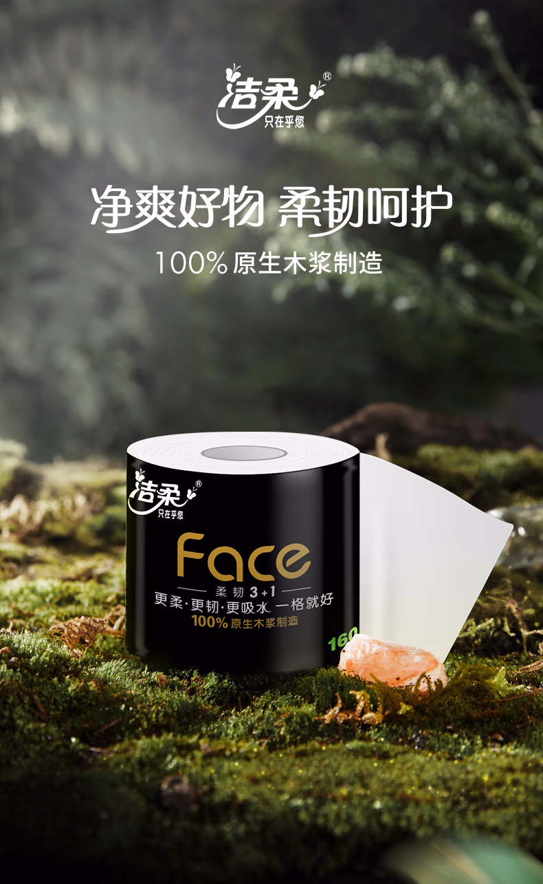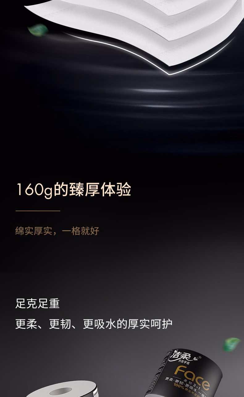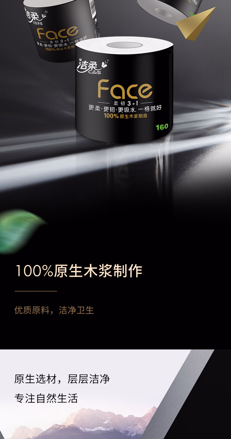 > 洁柔有芯卷纸 黑Face加厚4层160克*24卷 高克重 卫生纸卷筒纸纸巾整箱