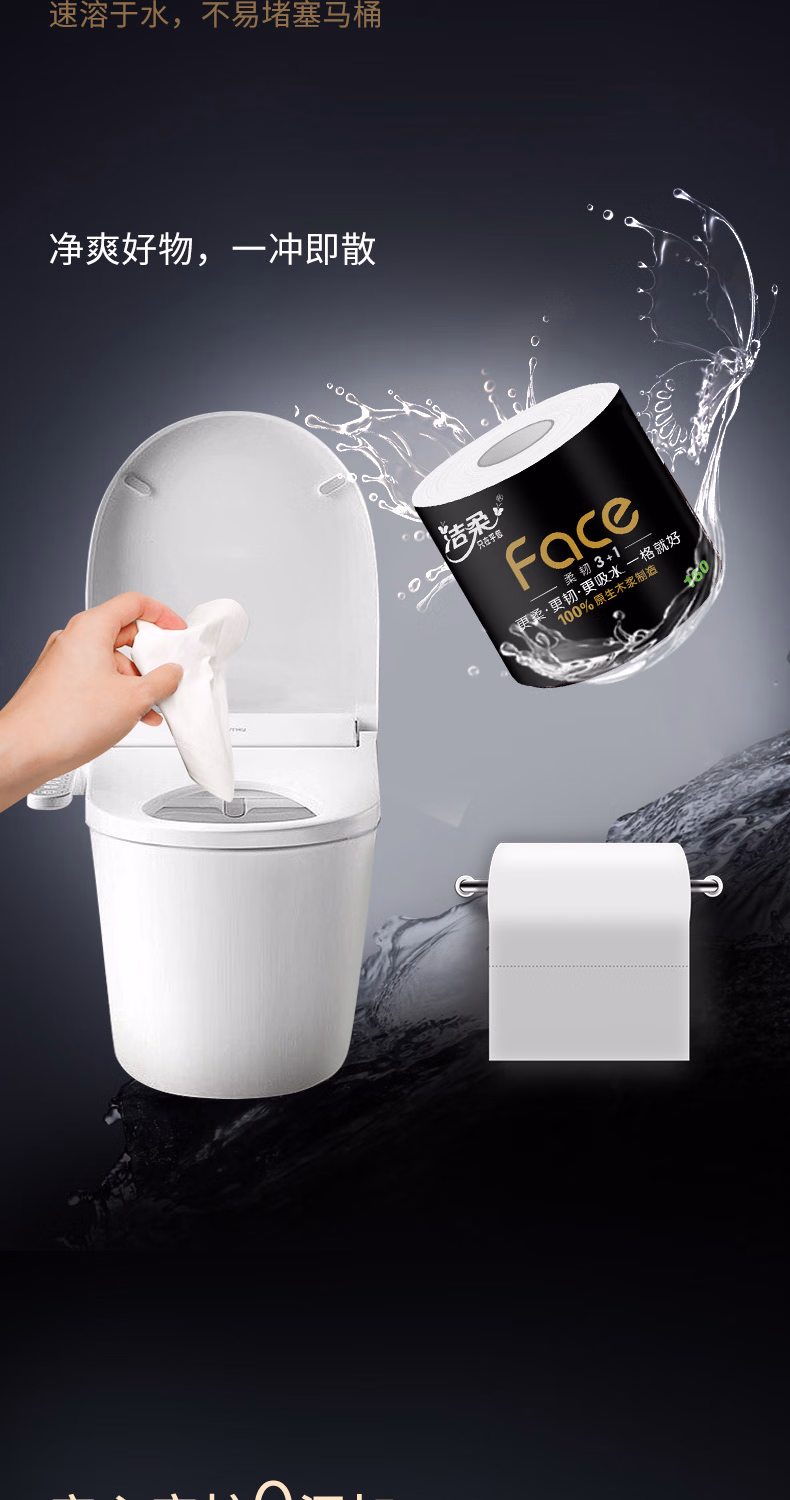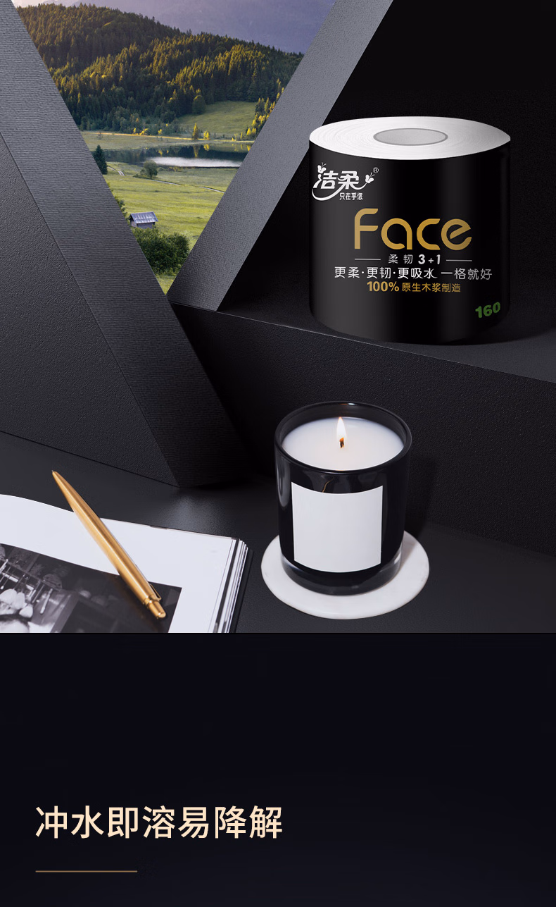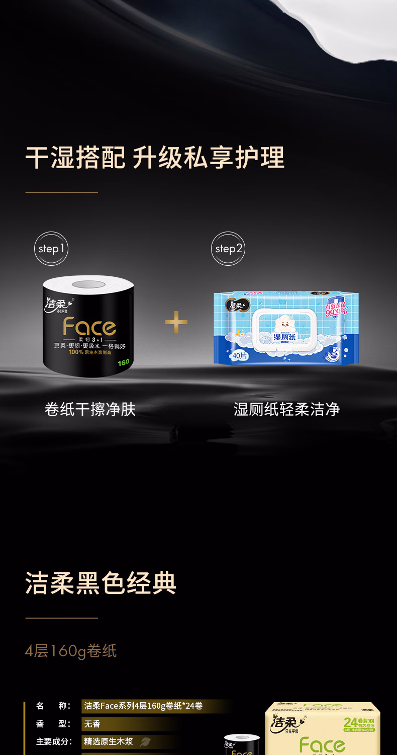 > 洁柔有芯卷纸 黑Face加厚4层160克*24卷 高克重 卫生纸卷筒纸纸巾整箱