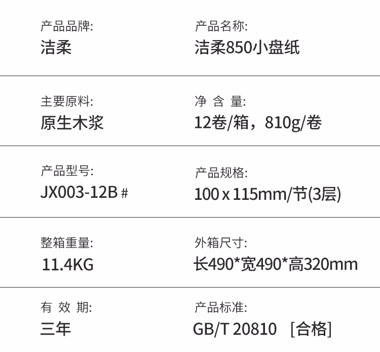 洁柔大卷纸JX003-12B三层大盘纸卫生纸卷筒纸厕纸整箱12卷包邮 JX003(12卷 整箱)
