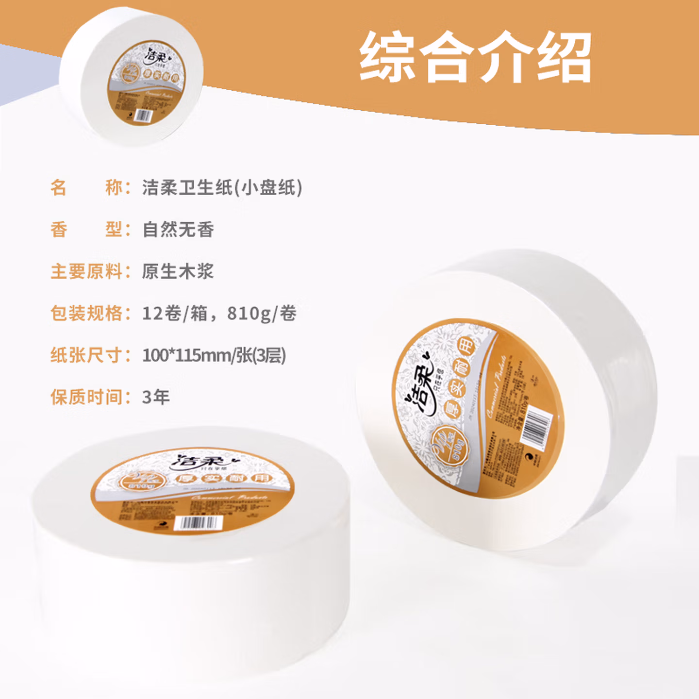 > 洁柔大卷纸JX003-12B三层大盘纸卫生纸卷筒纸厕纸整箱12卷包邮 JX003(12卷 整箱)