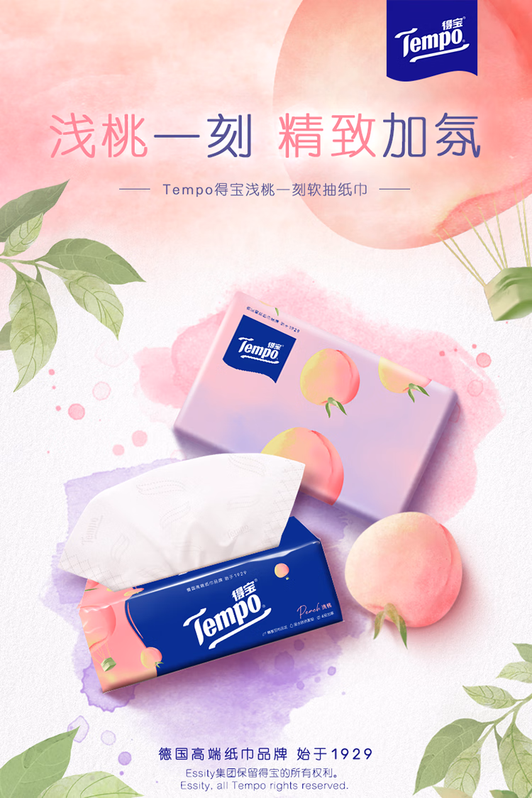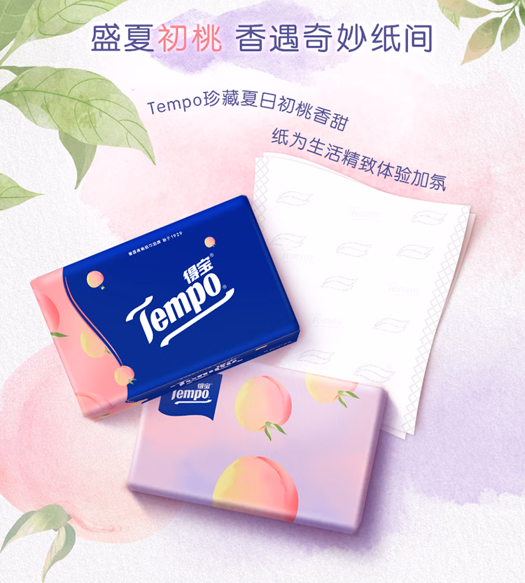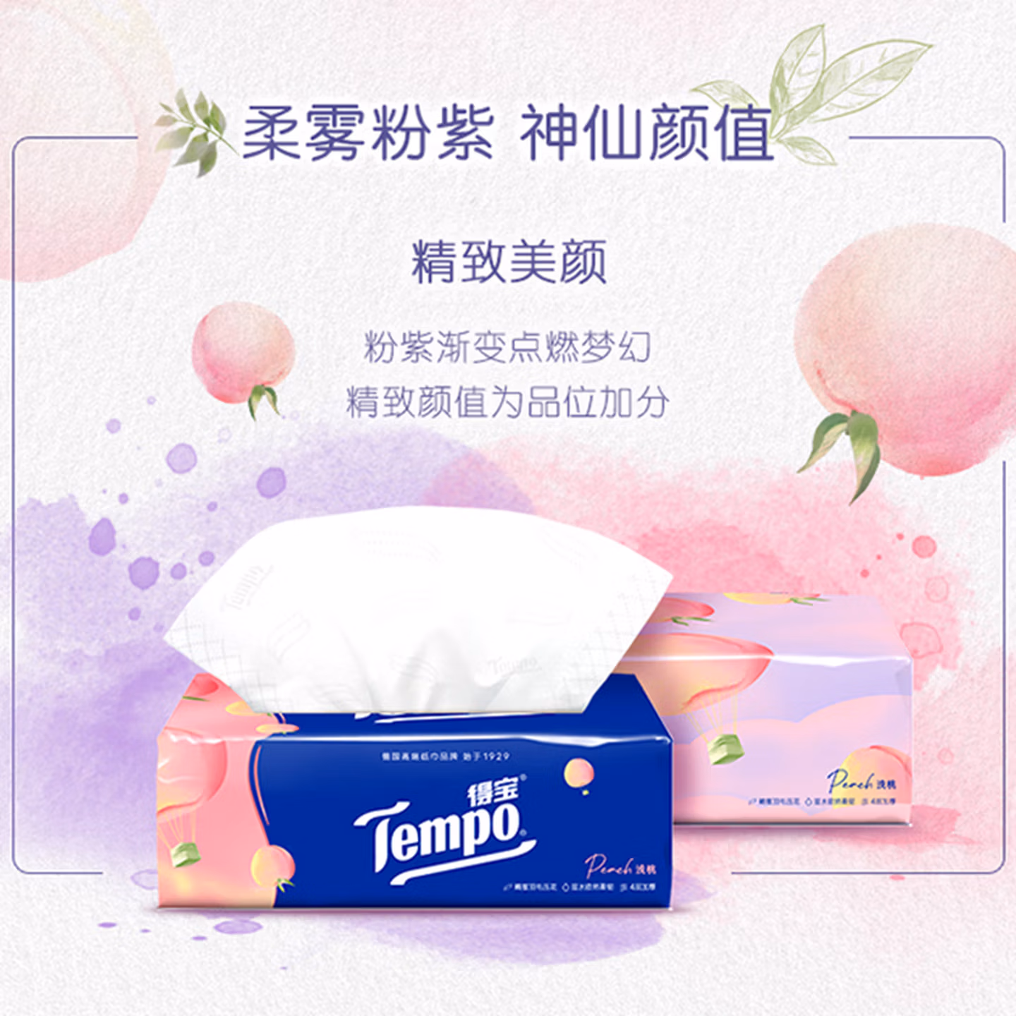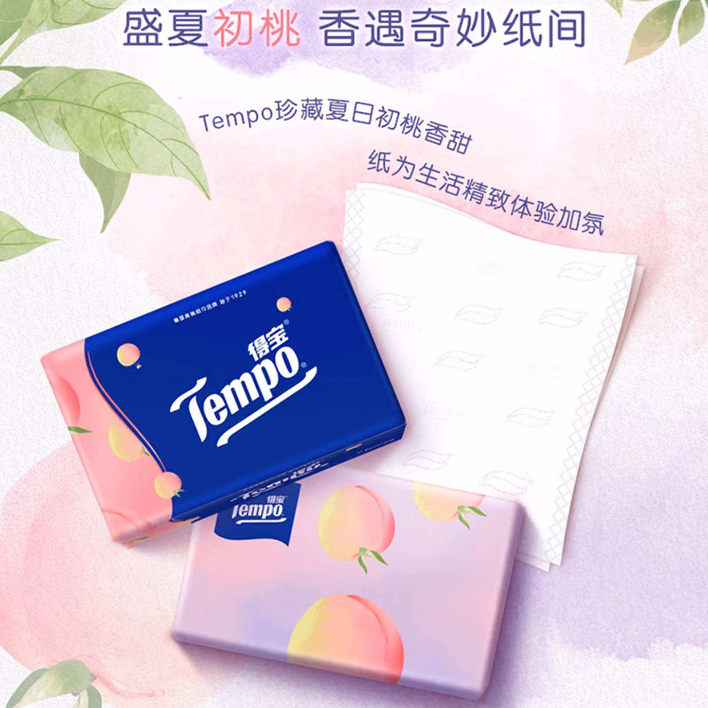 > 得宝(TEMPO)一博同款 抽纸 真M码 甜心桃味4层90抽*16包 湿水不易破 纸巾