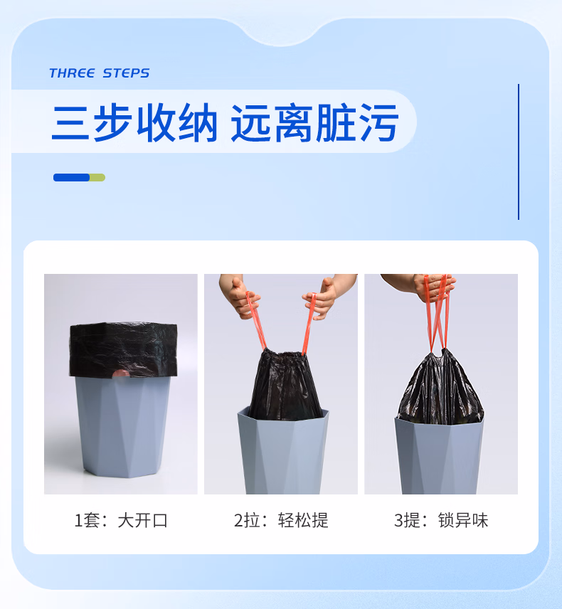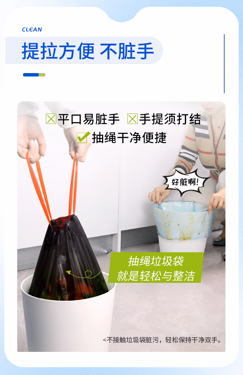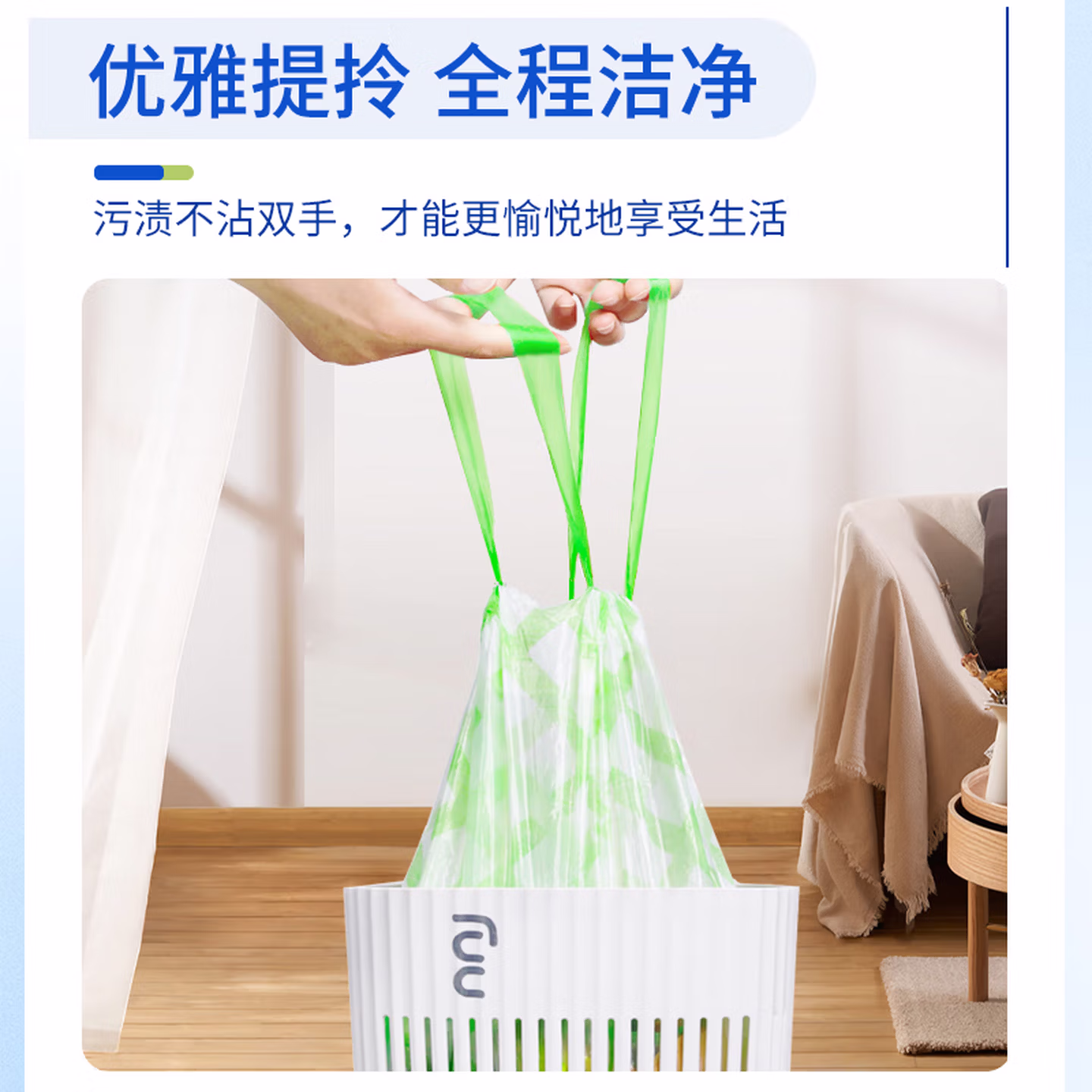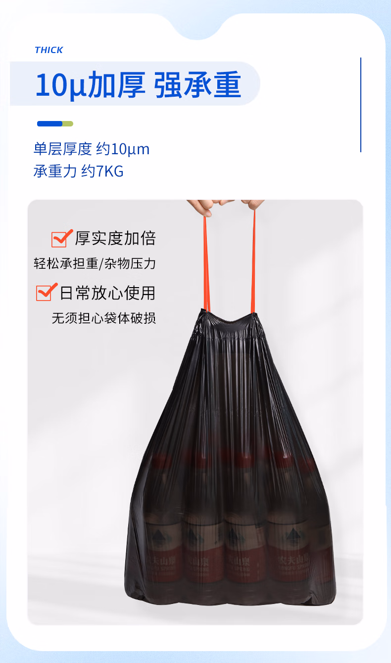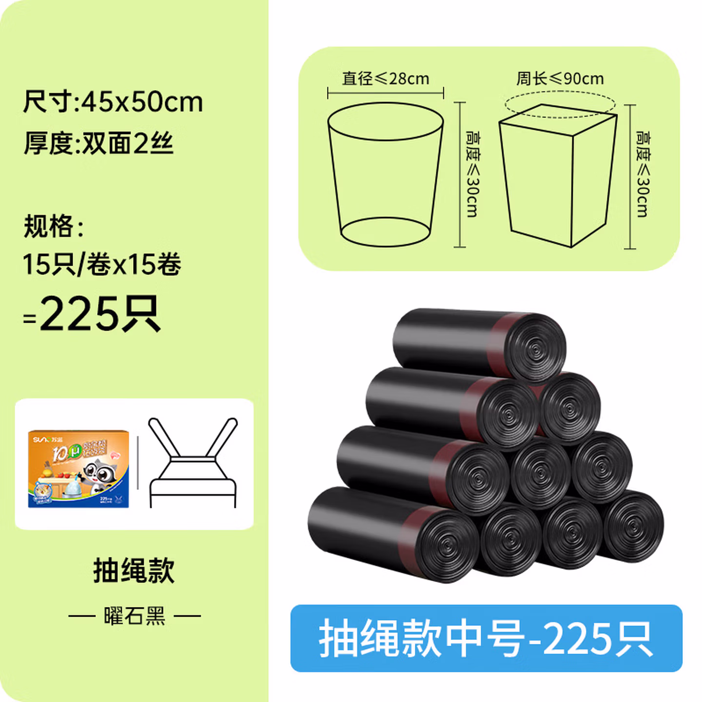 > 苏诺抽绳式垃圾袋印花45*50cm200只单面1丝加厚加大厨房厨余垃圾袋