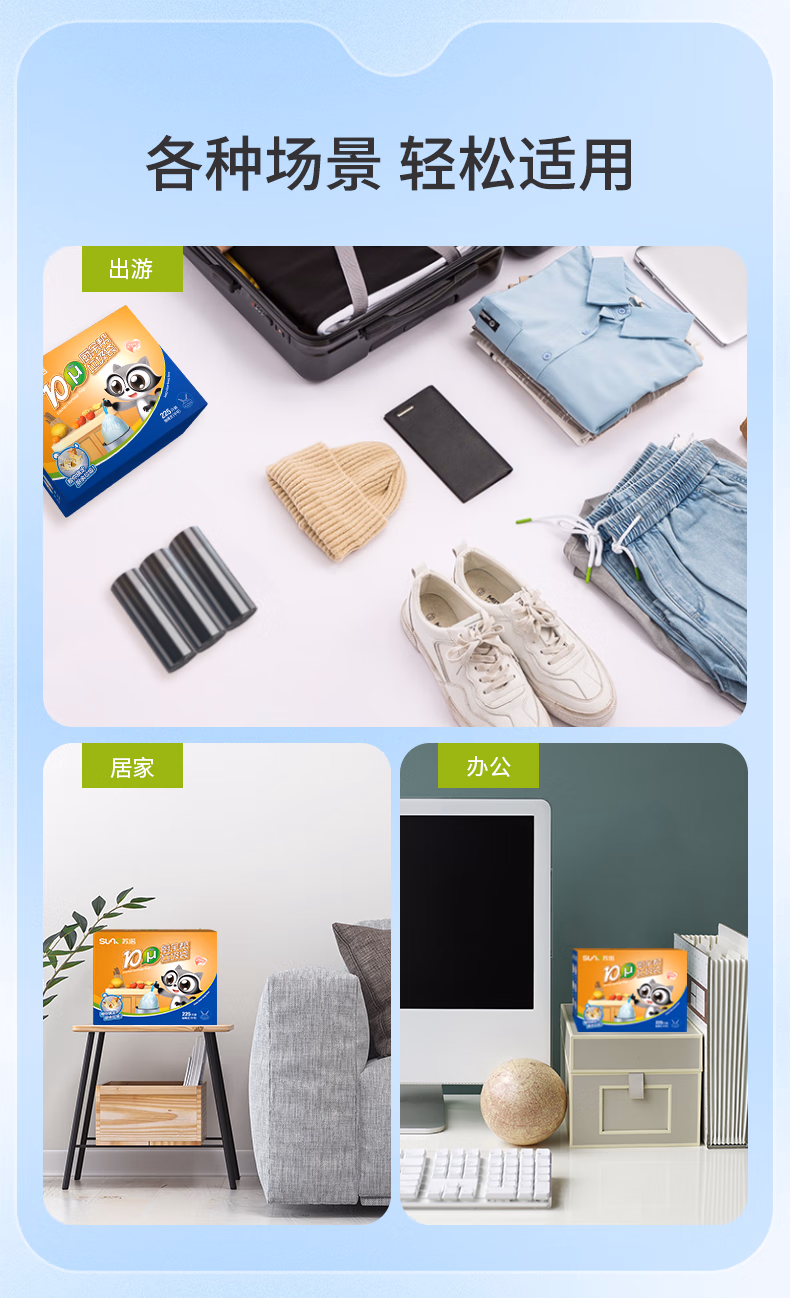 苏诺抽绳式垃圾袋印花45*50cm200只单面1丝加厚加大厨房厨余垃圾袋